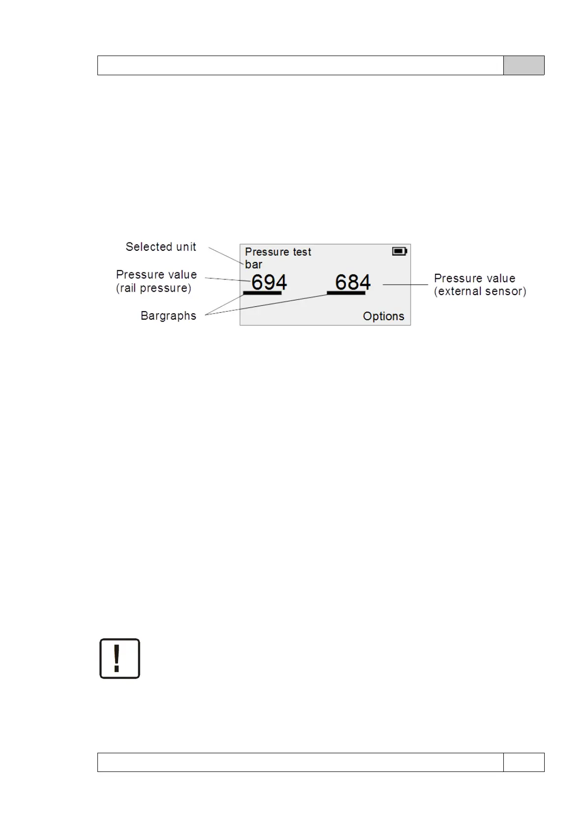 The screen contains two pressure values - the value on the left applies to the sensor on the rail