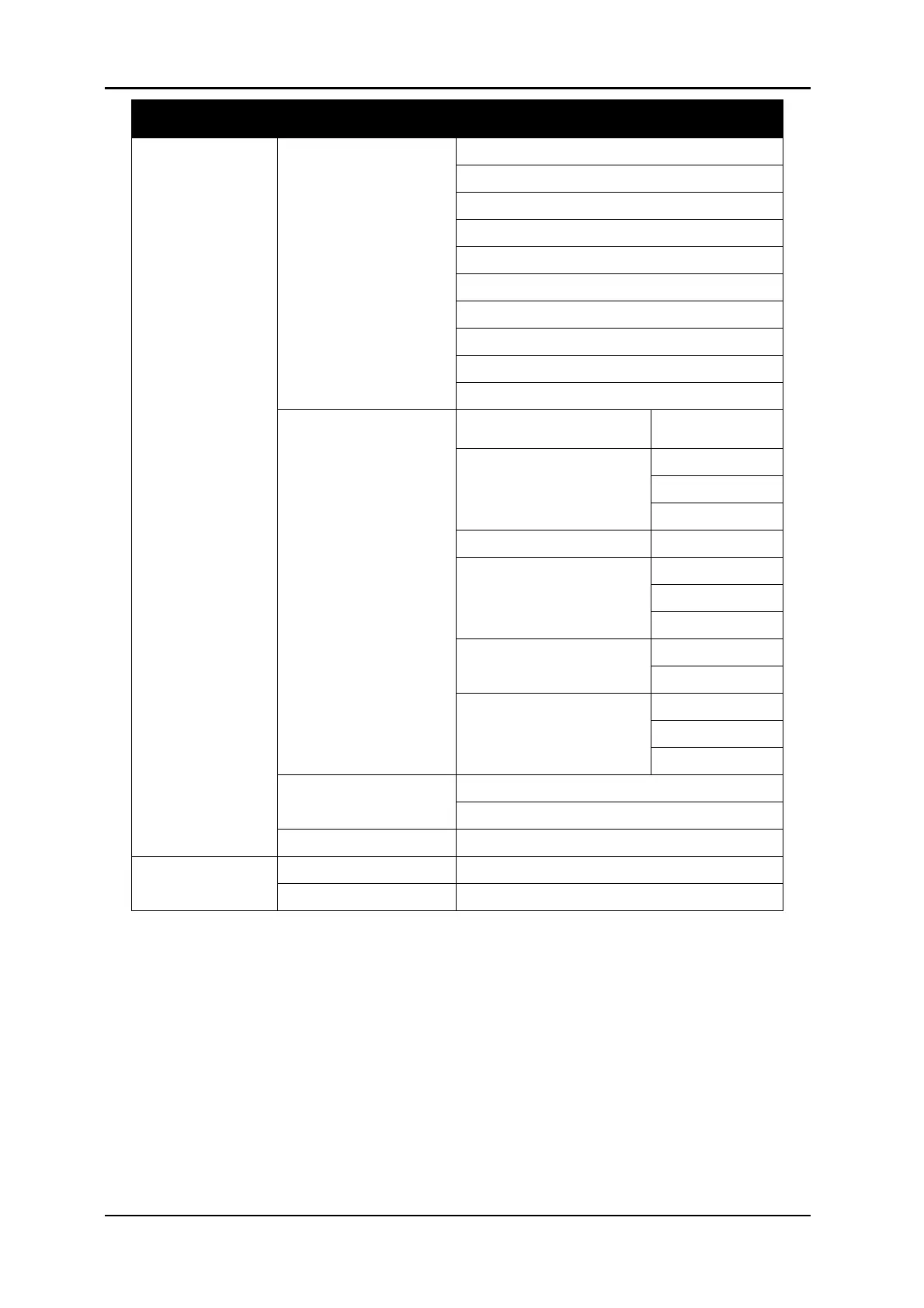 Setup Menu Sub Menu Item / Setting Value