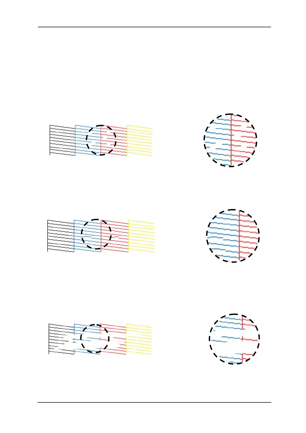Printing" p.49 to do a nozzle test print and compare the results to the pictures below. White ink is