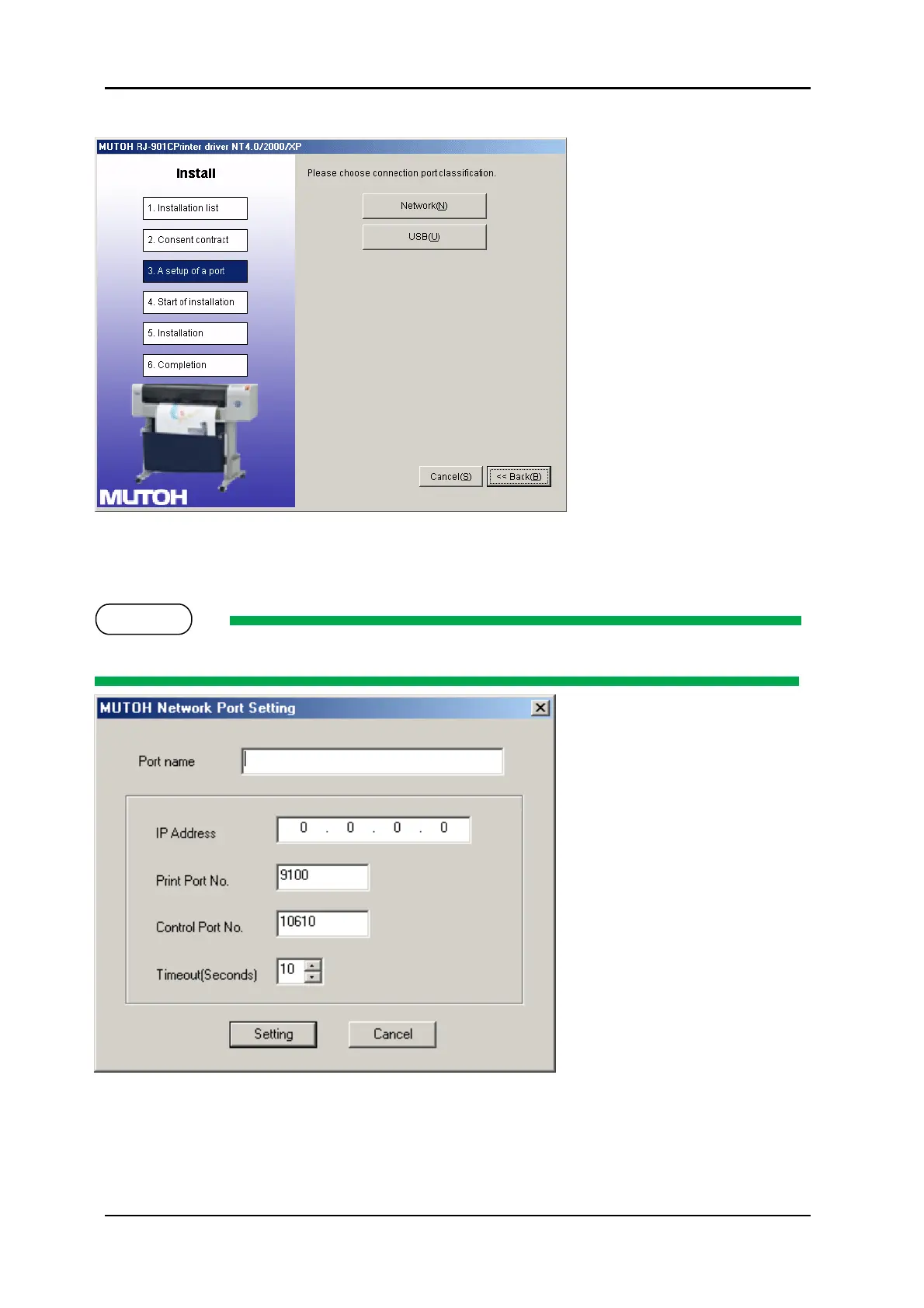 9. Set the Port name and IP Address and click “Setting”