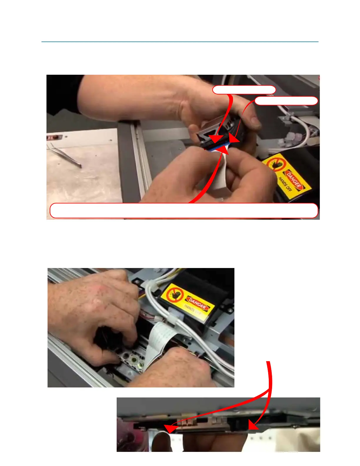 Insert FFC cables into new printhed. Start with the SLOT 1, and insure that the cable teeth are facing the