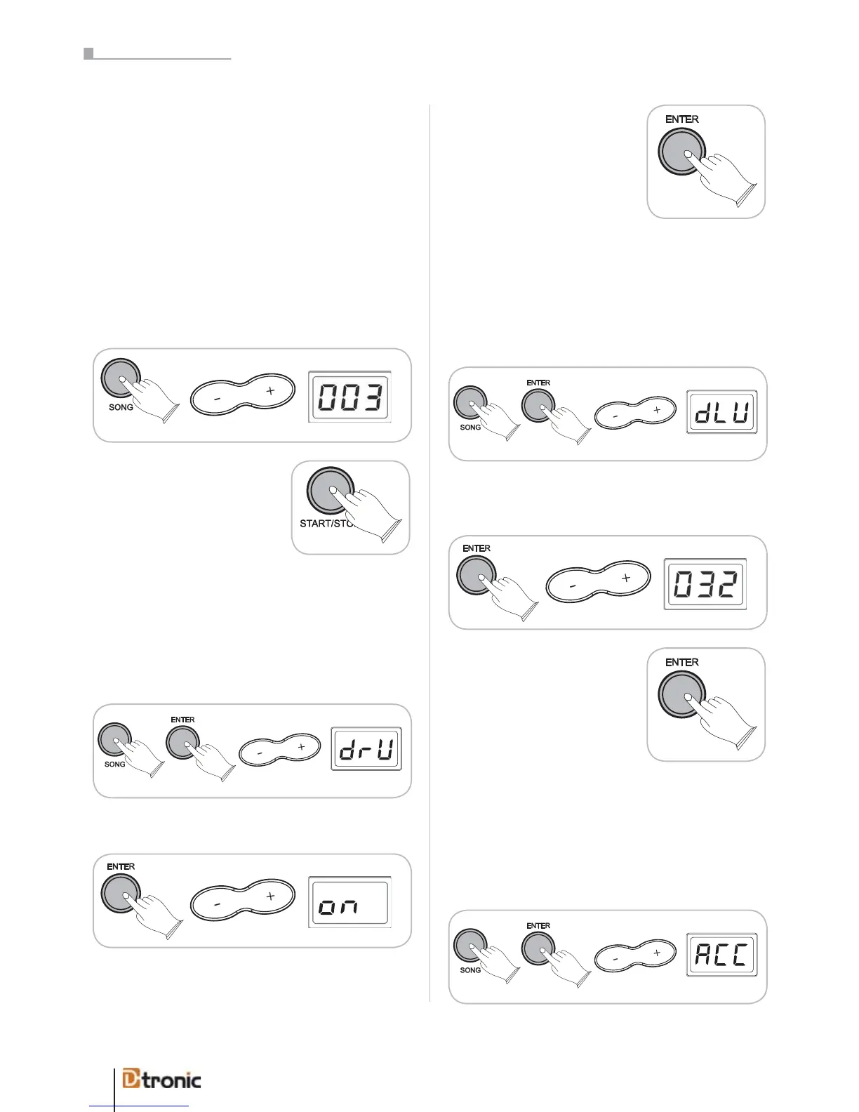 Press SONG, press ENTER, use +/- to select drU.