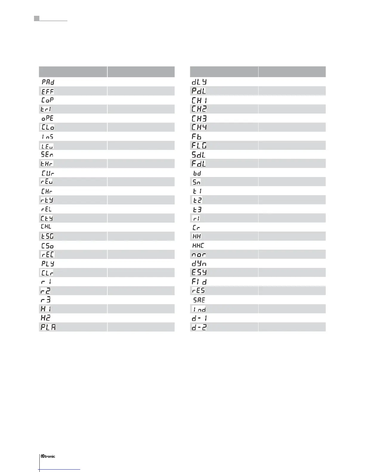 DTronics Q-5 - Liste der LED-Abkürzungen