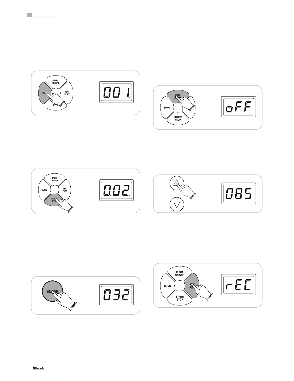 nus RECORD, PLAY and CLEAR by pressing the REC/PLAY
