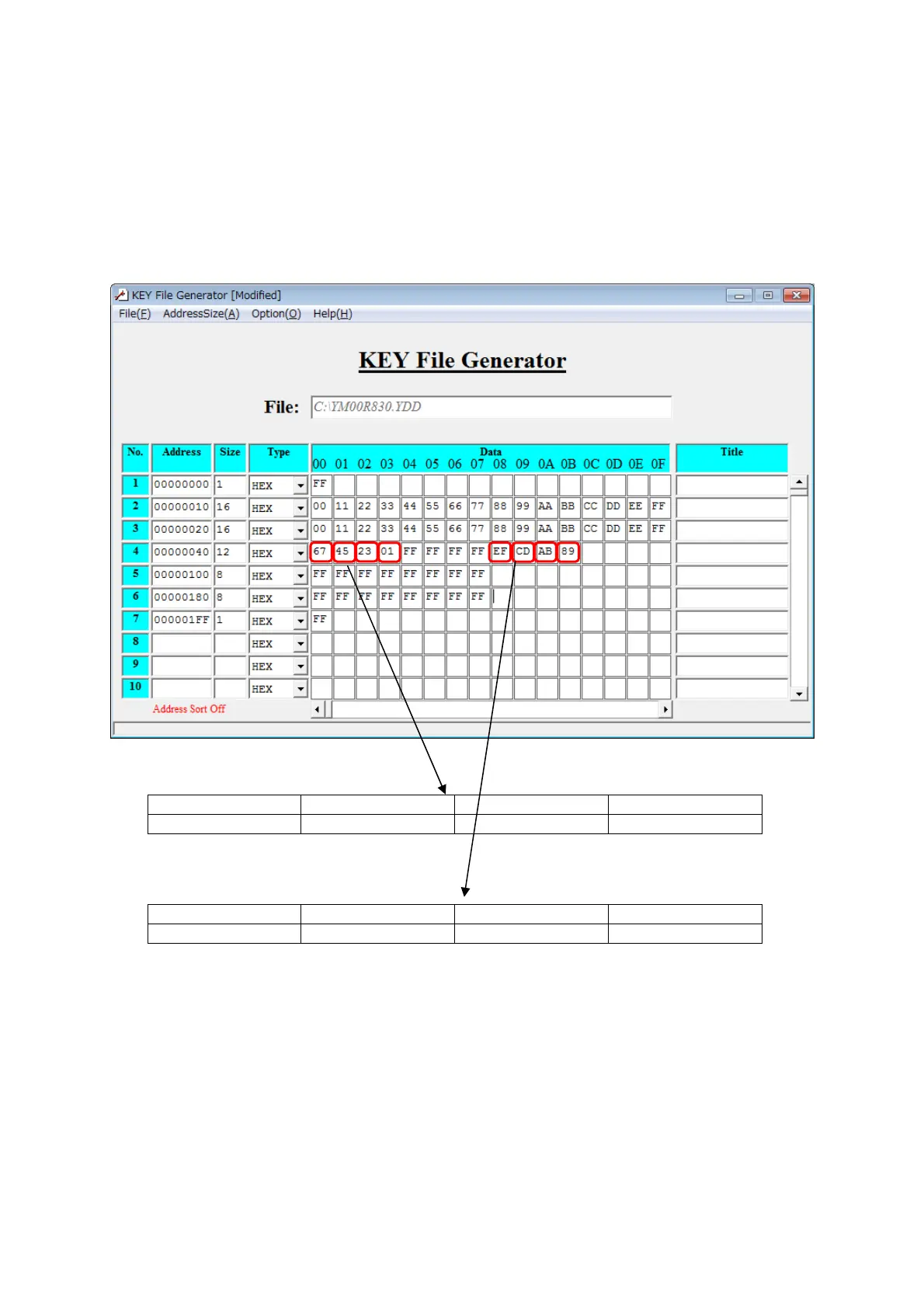 The following figure shows the configuration of AZ481 (KEY file generator).