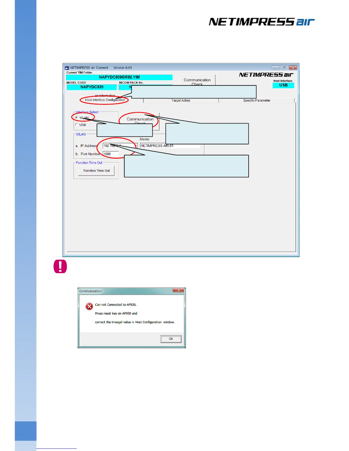 and NETIMPRESS air has not completed. Please check the connection settings again.