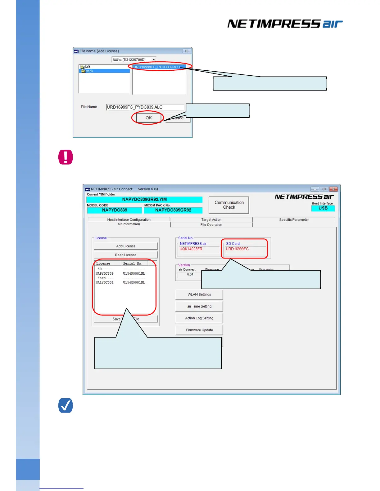 License file is fixed to the serial number of SD card for NETIMPRESS air.