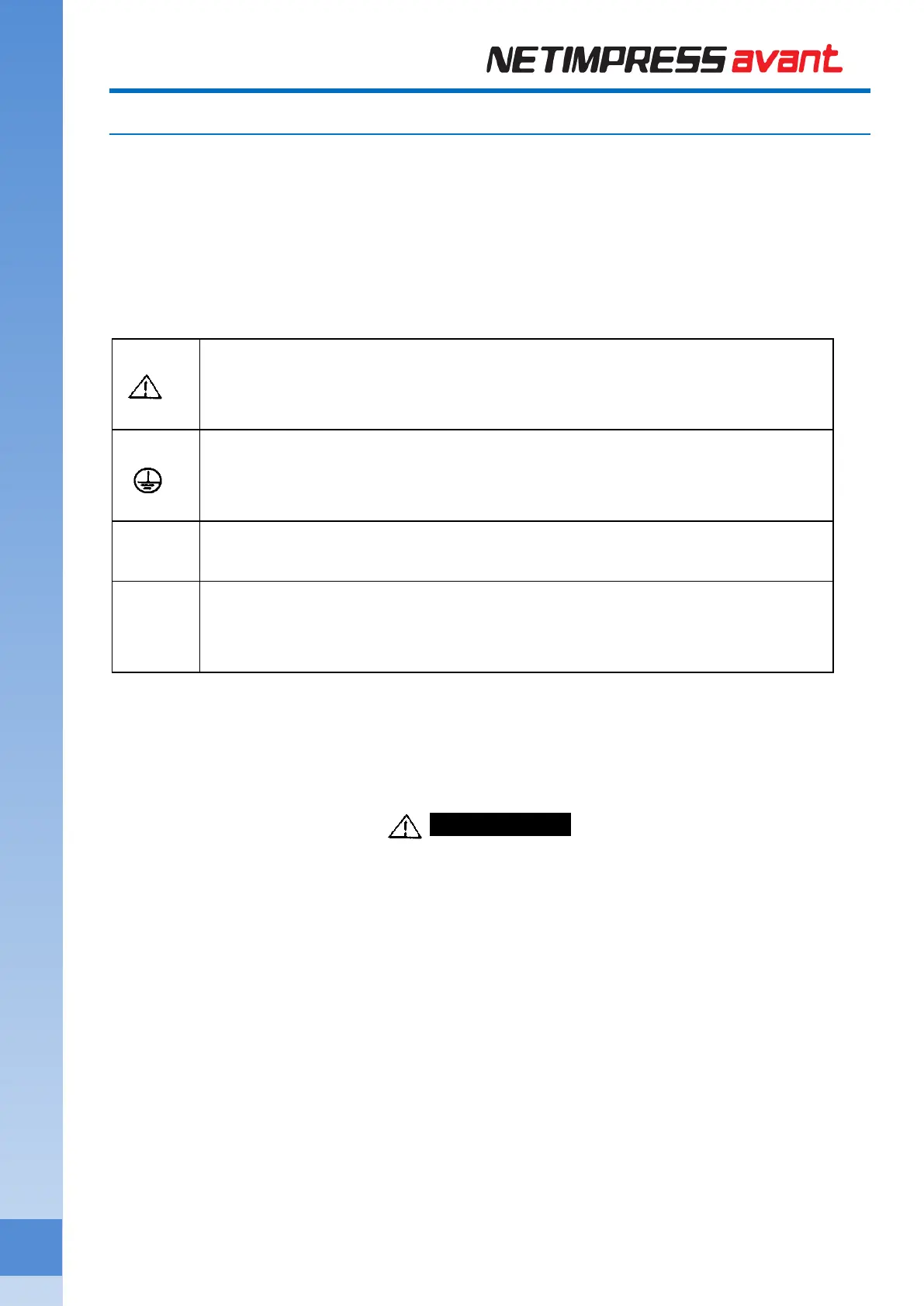 This manual uses the icons as below to use NETIMPRESS avant safety.