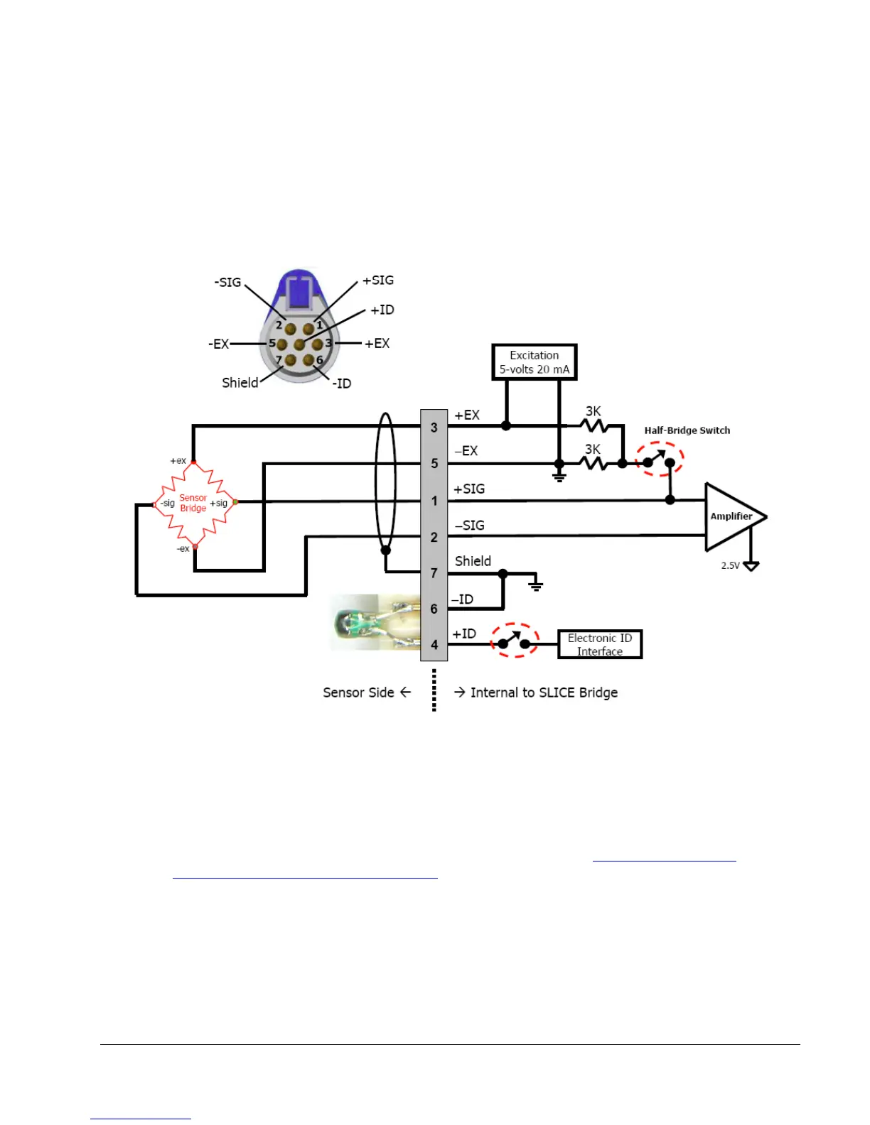 The diagram below shows a common 4-wire bridge sensor connection to a Bridge SLICE