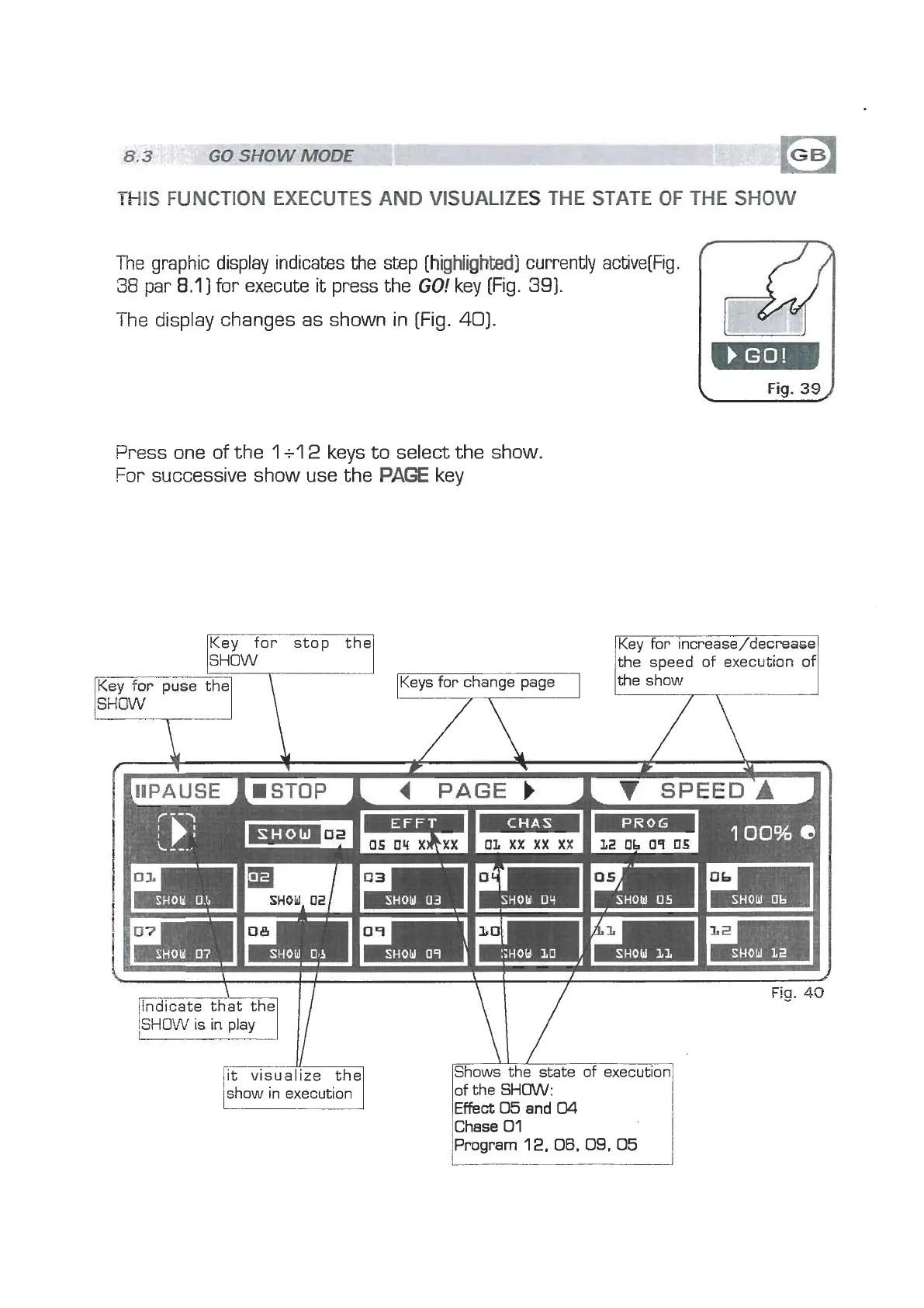 The graphic display indicates the step [highlighted] currently active[fig.