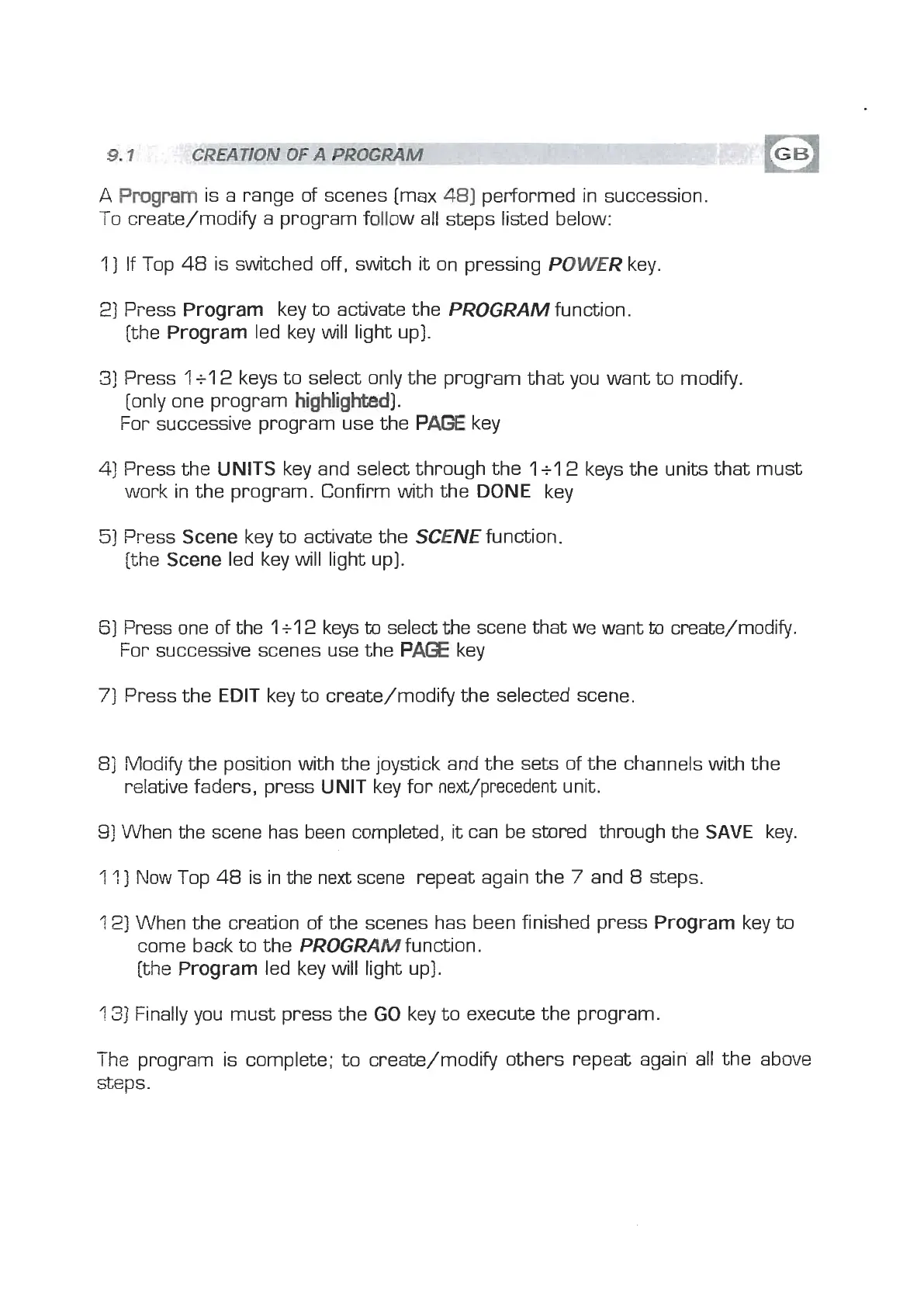 To create/modify a program fdlow all steps listed below: