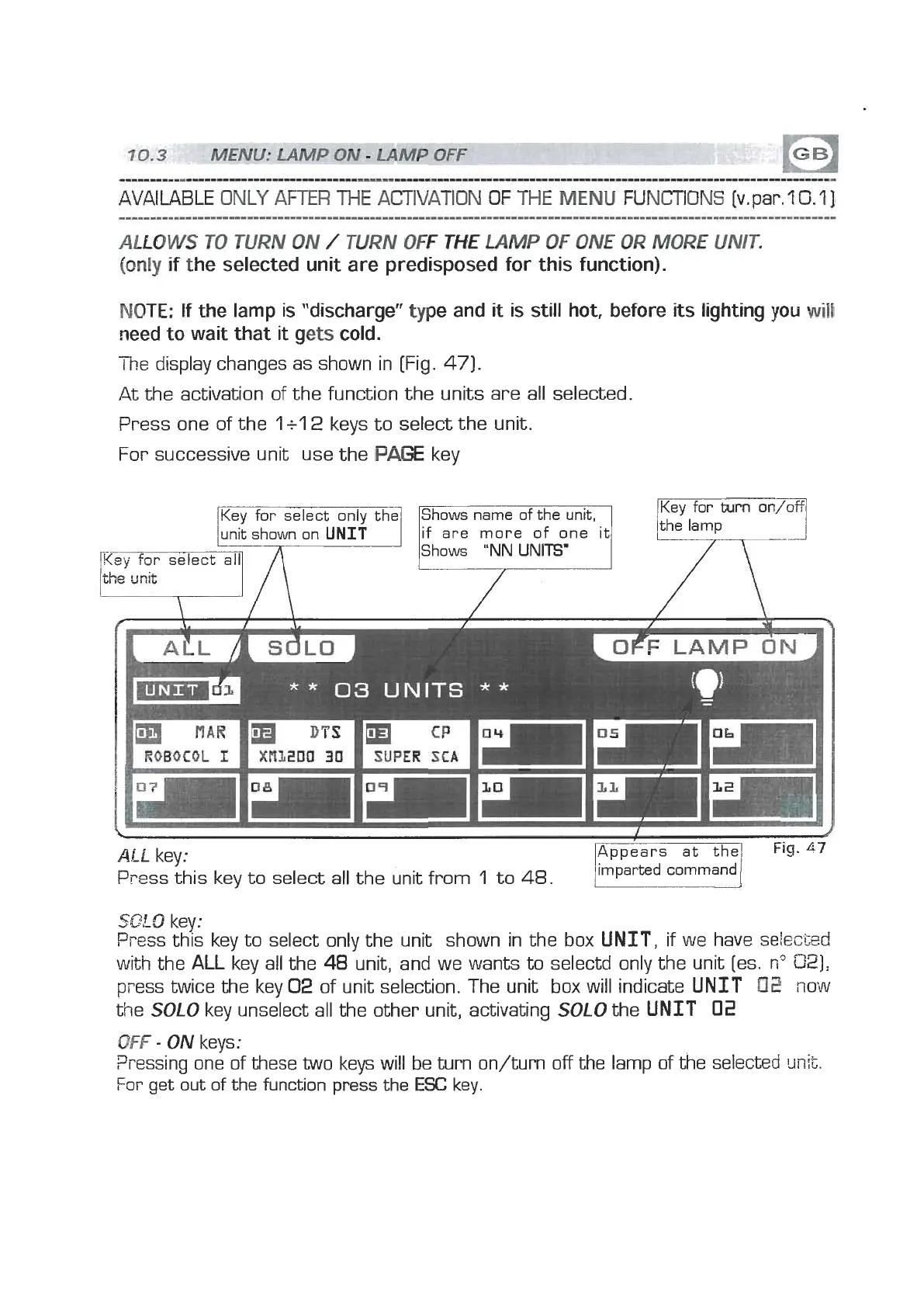 Press this key to select only the unit shown in the box UNIT, if we have seiected