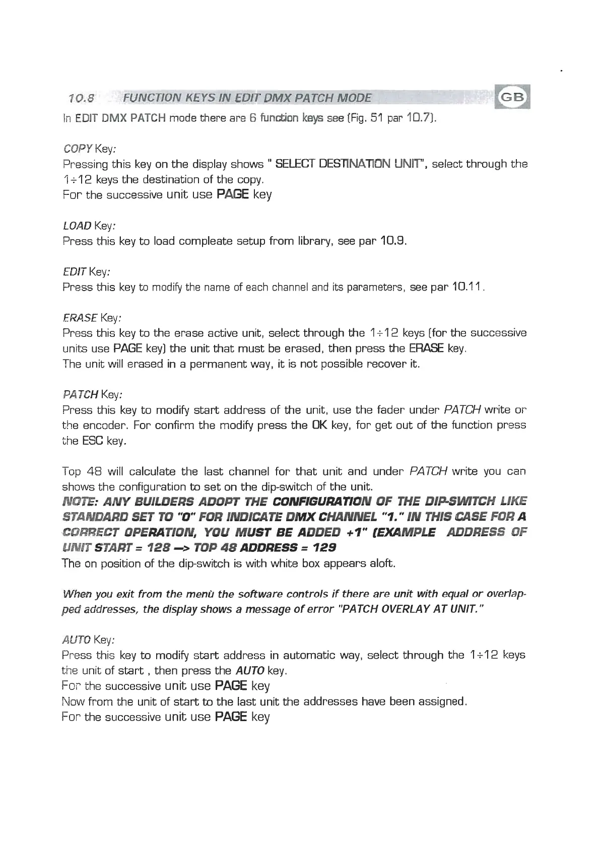 addresses, the display shows a message of error "PATCH OVERLAY AT UNIT.