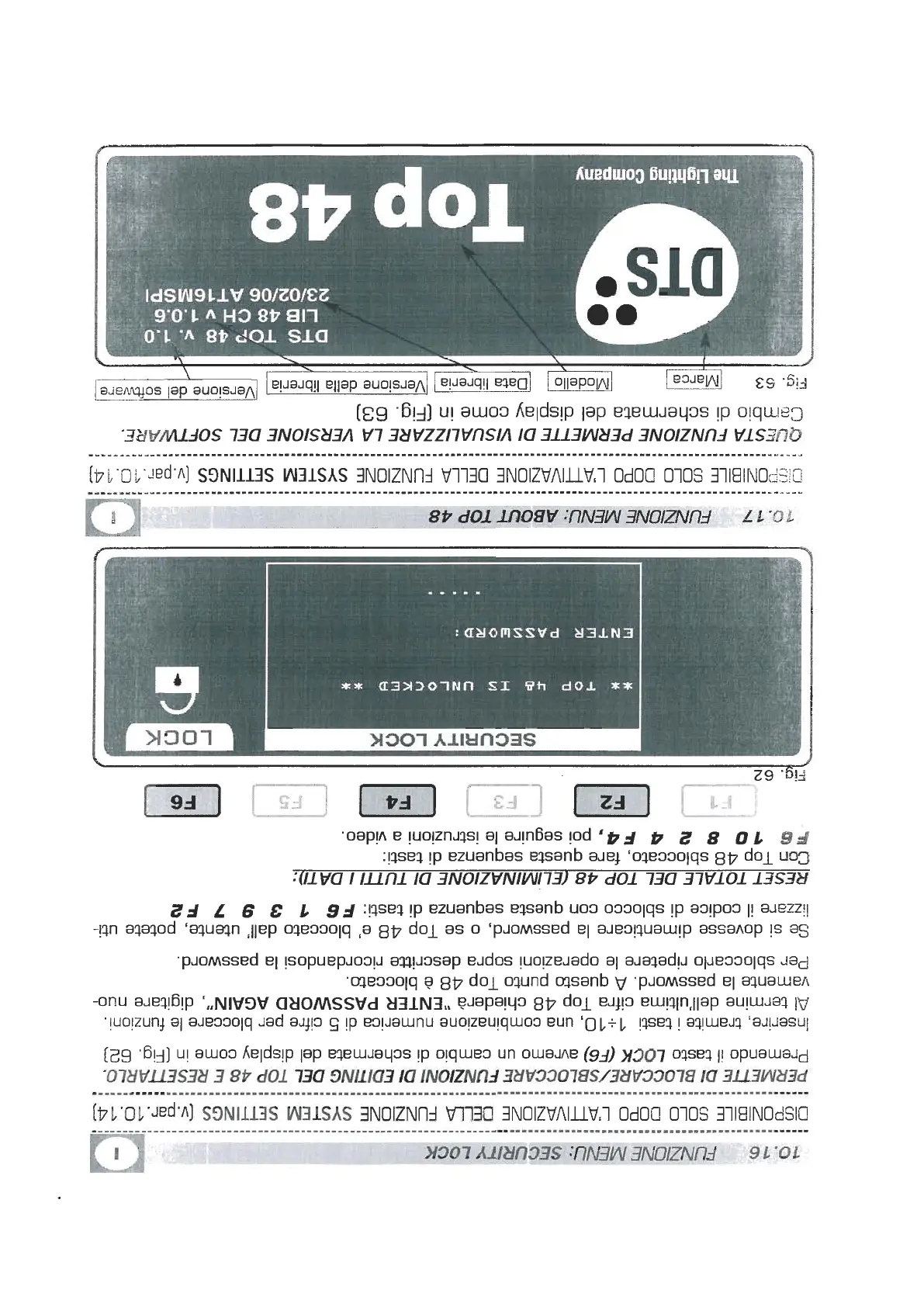 DTS Top 48 - FUNZIONE MENU: SECURITY LOCK; FUNZIONE MENU: ABOUT TOP 48