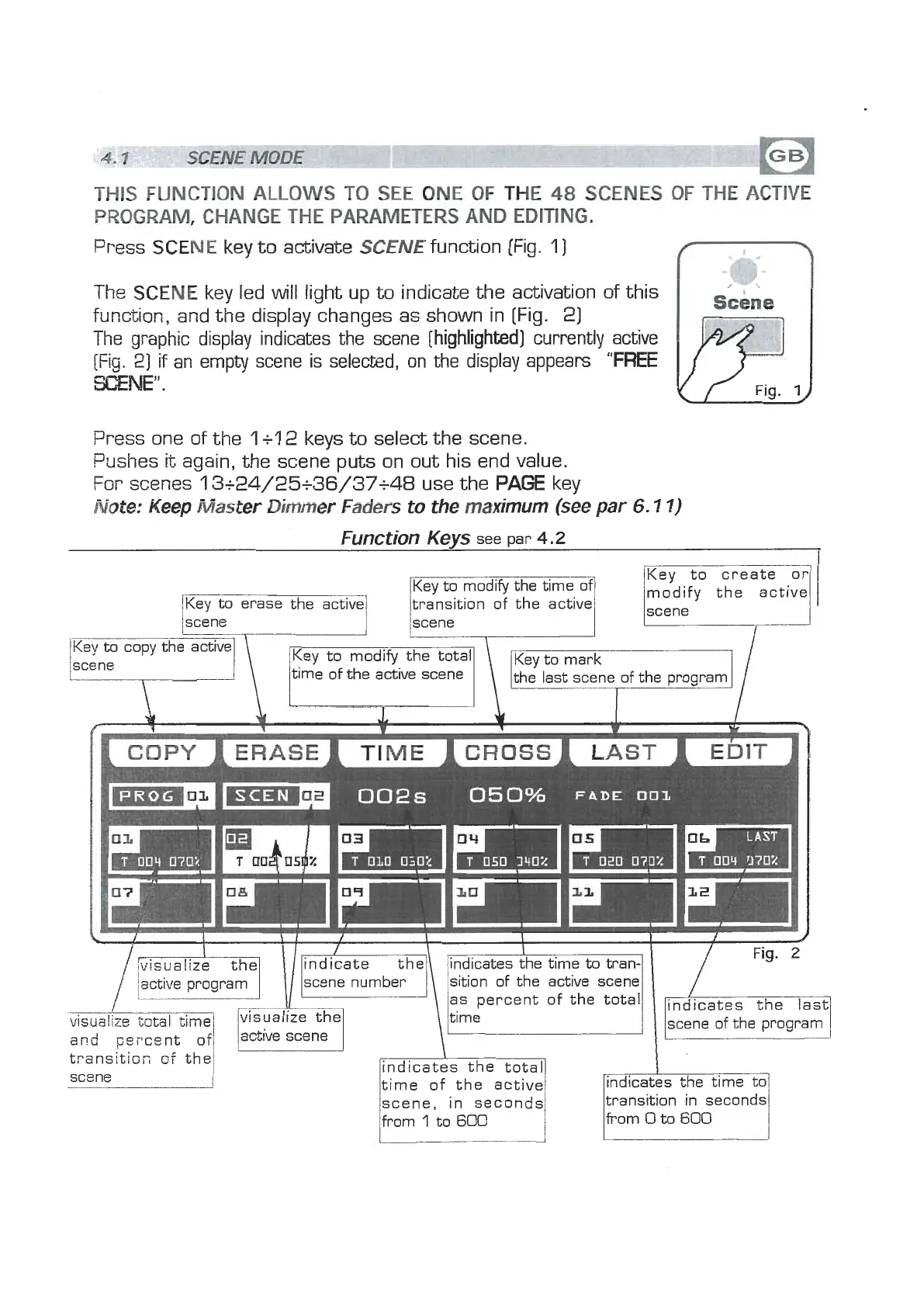 The graphic display indicates the scene [highlighted] currently active