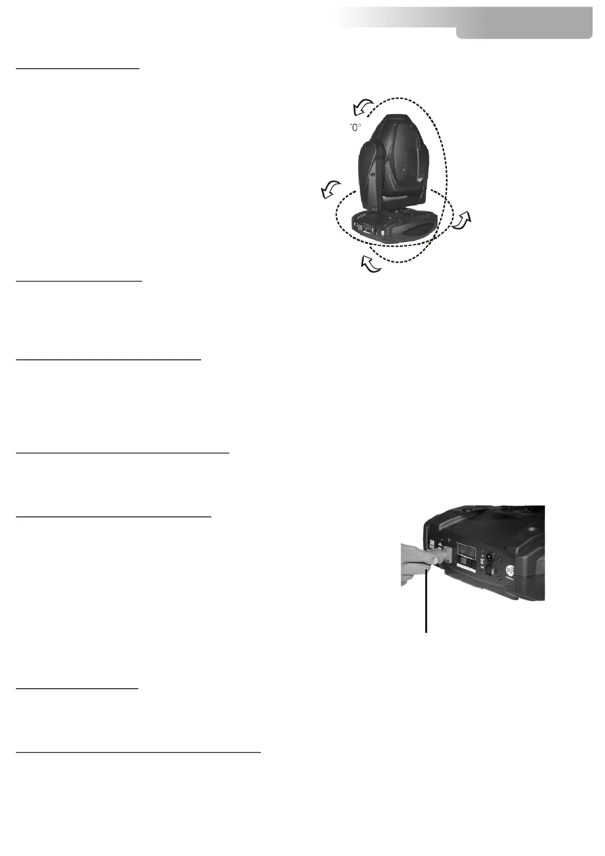 The projector has a maximum movement of 540° for Pan and 270° for Tilt. DO NOT place any