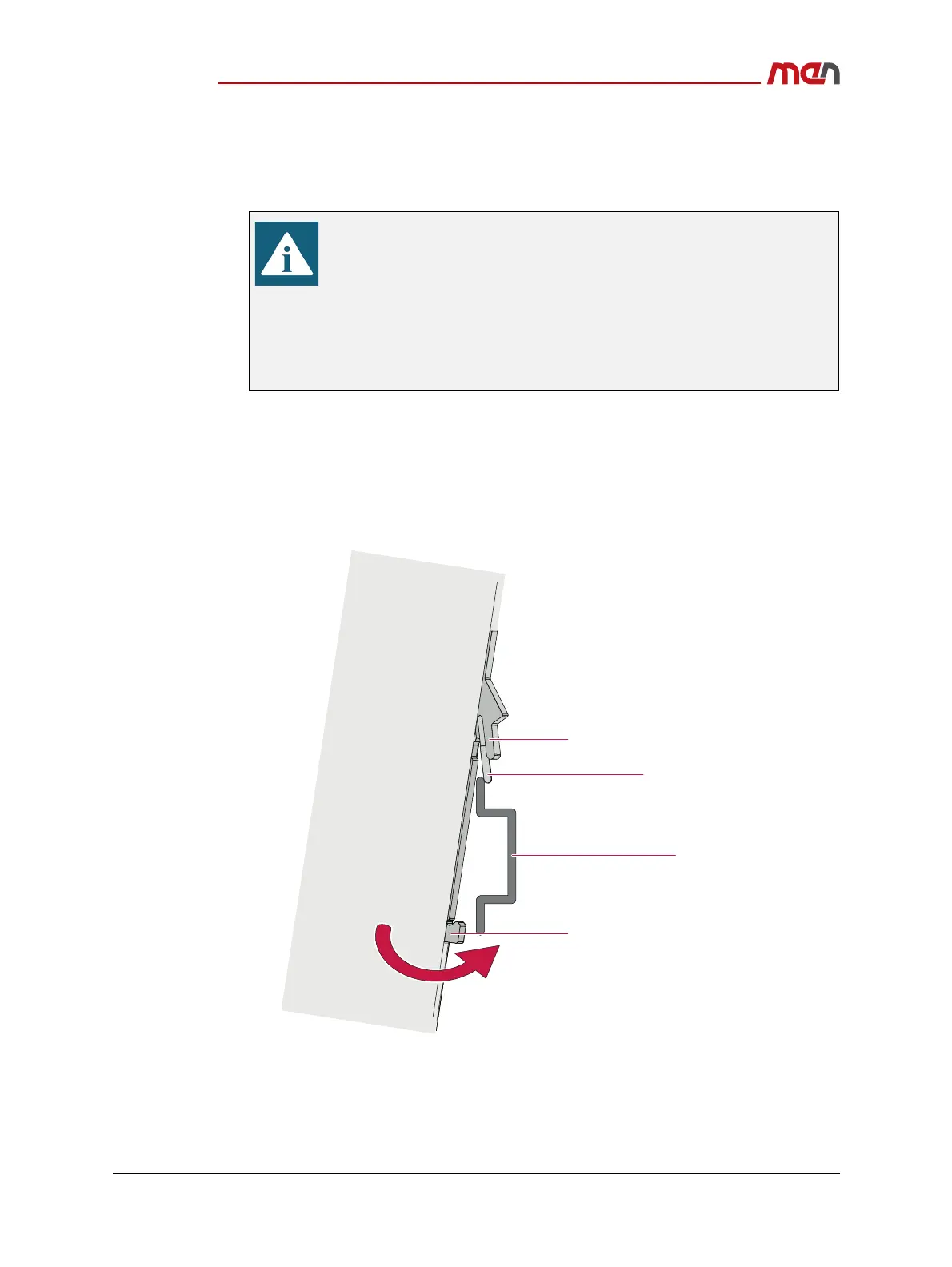 » Clip the upper DIN rail guide groove onto the DIN rail, making sure that the retain-