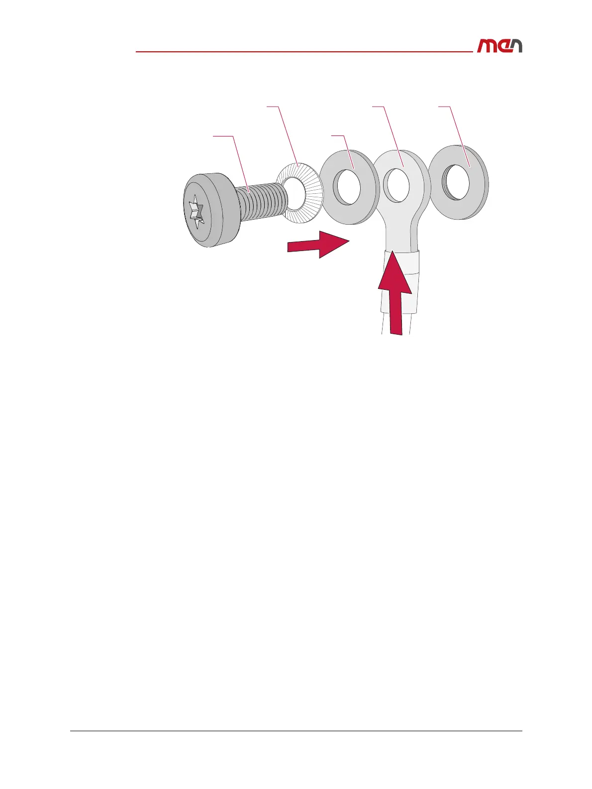 » Align the spring washer, the washer and the earthing cable over the M4 screw.