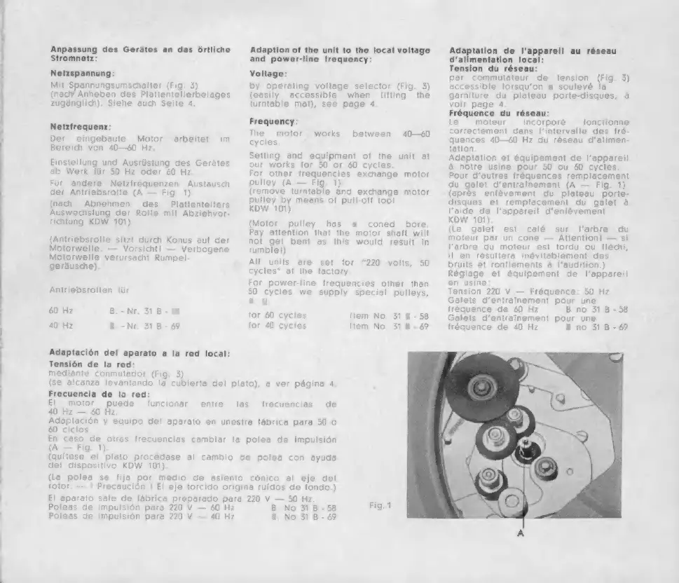 Dual 1007 - Adaptation of the unit to the local voltage and power-line frequency; Voltage; Frequency; Setting and equipment of the unit at our works