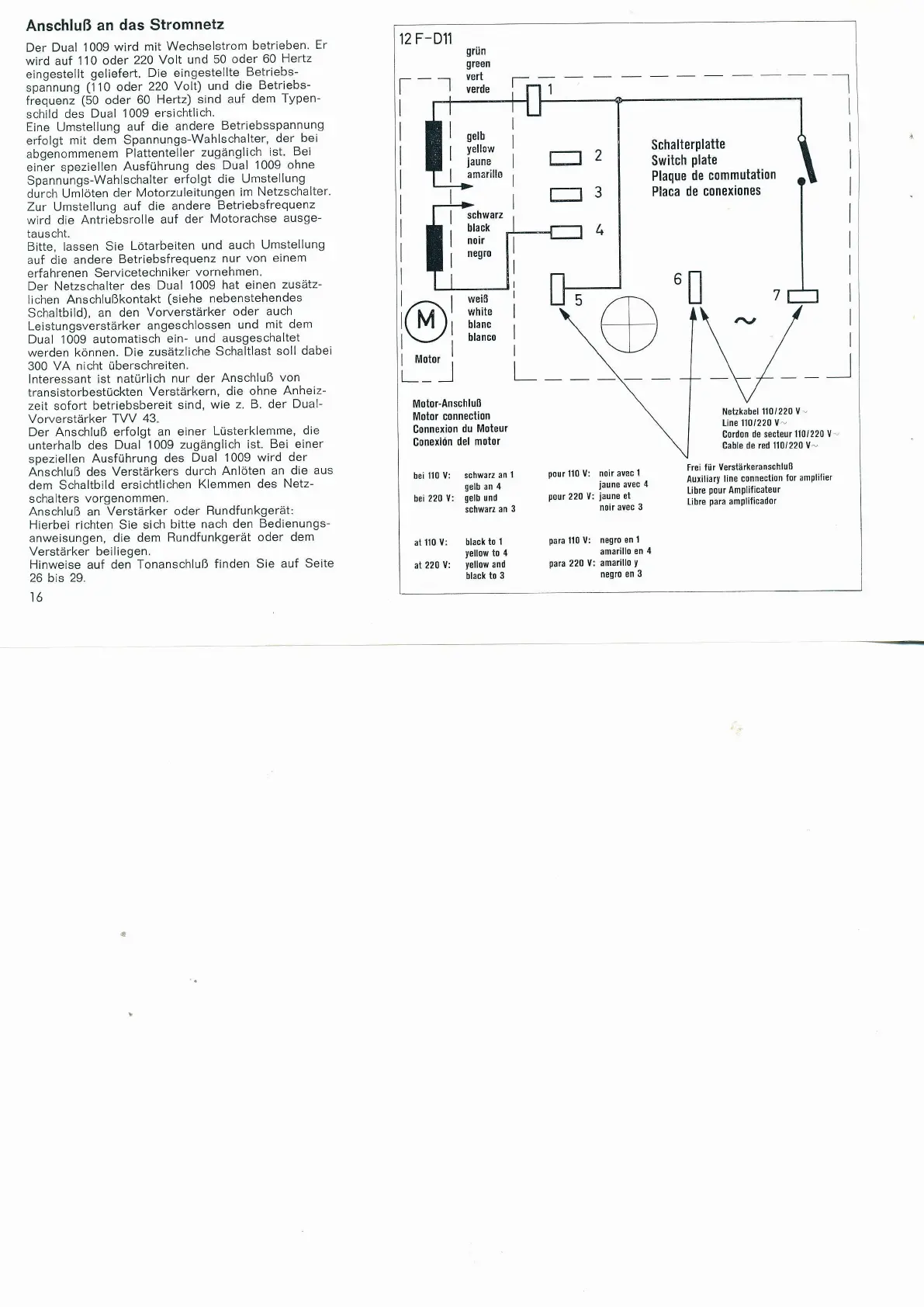 Dual 1009 - Anschluß an das Stromnetz