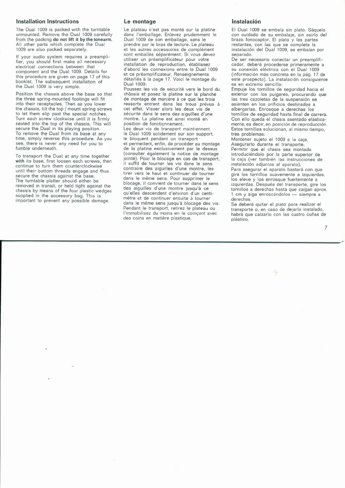 the Dual 1009. Details for