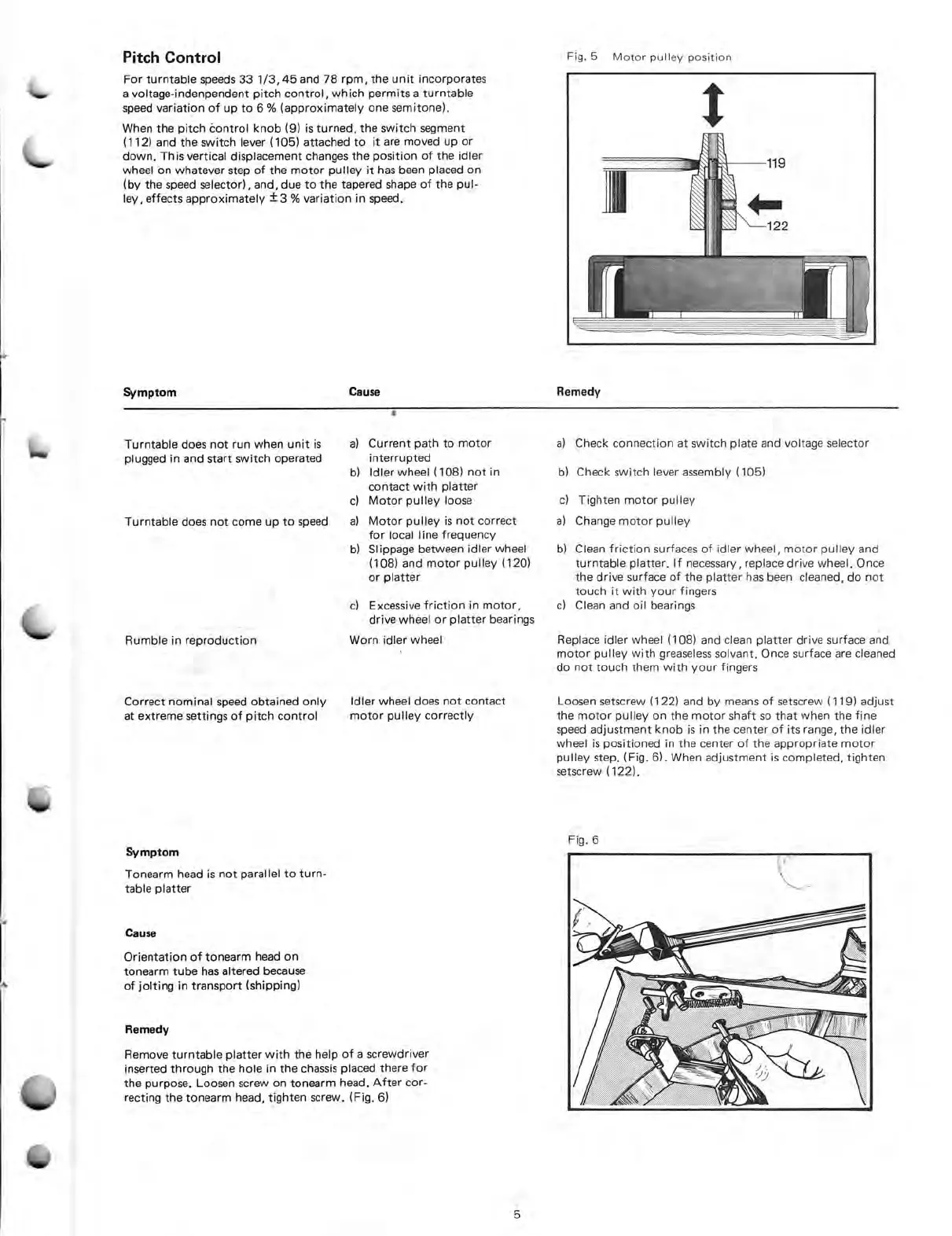 Dual 1216 - Pitch Control; Tonearm and Tonearm Bearing