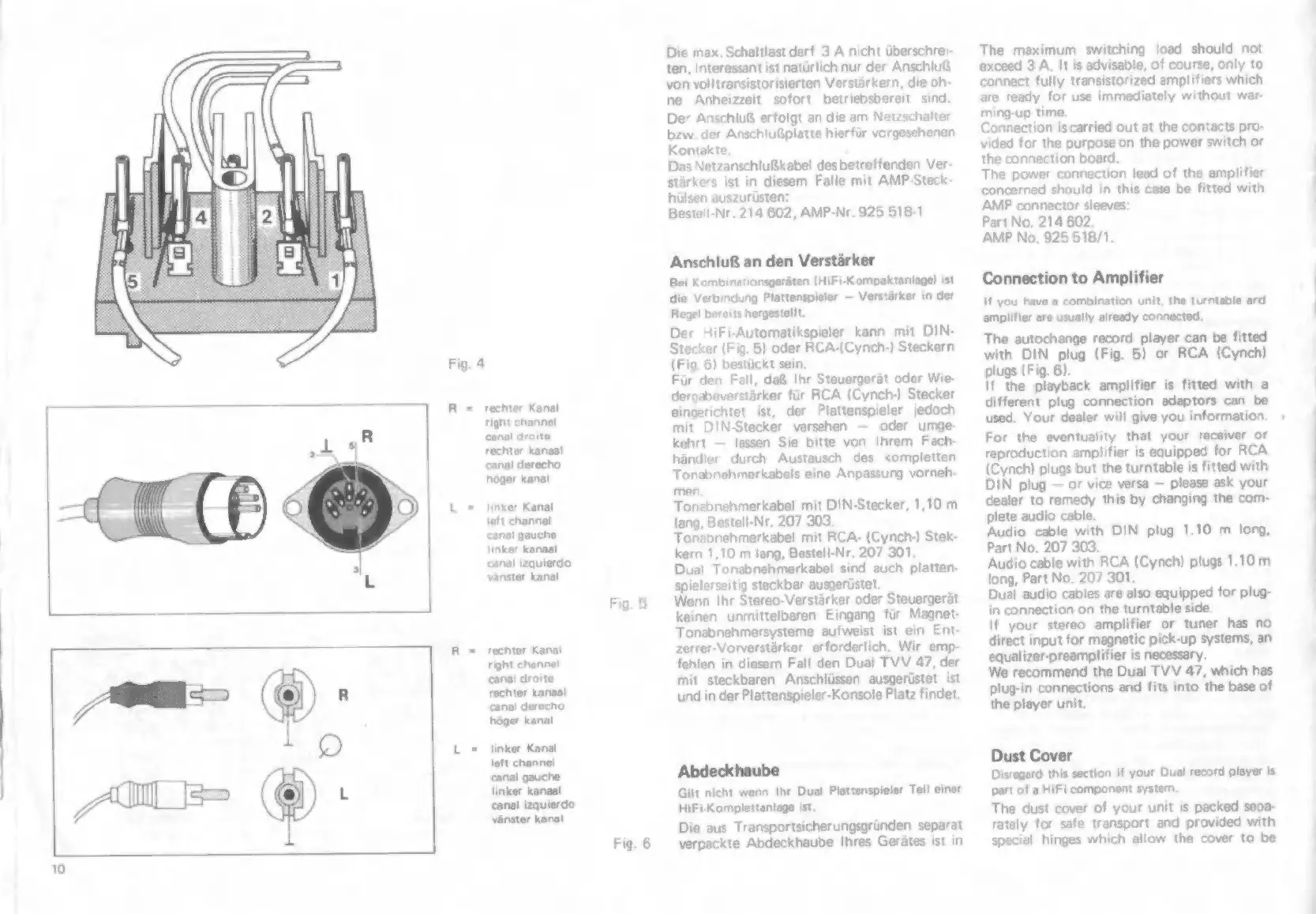 Dual 1228 - Audio Connections; Amplifier Connection; Audio Cable Options