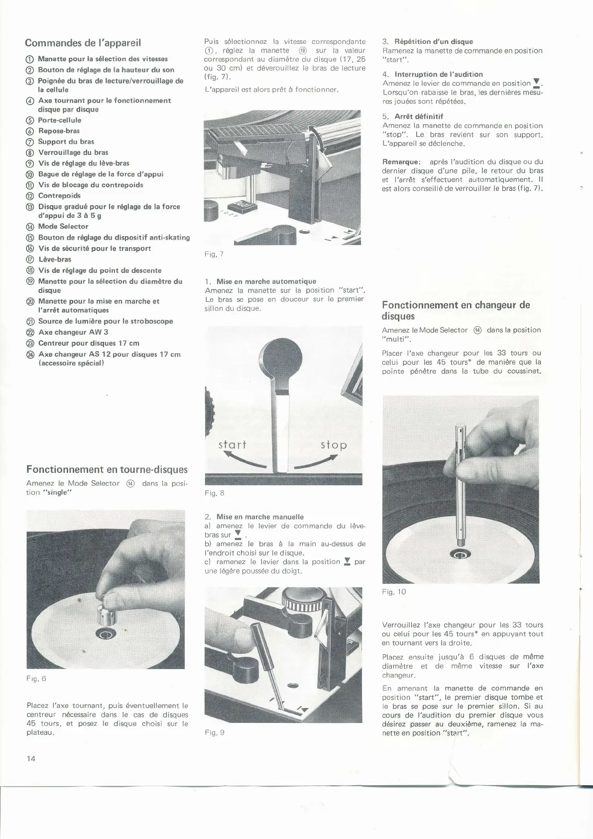 Commandes de I'appareil