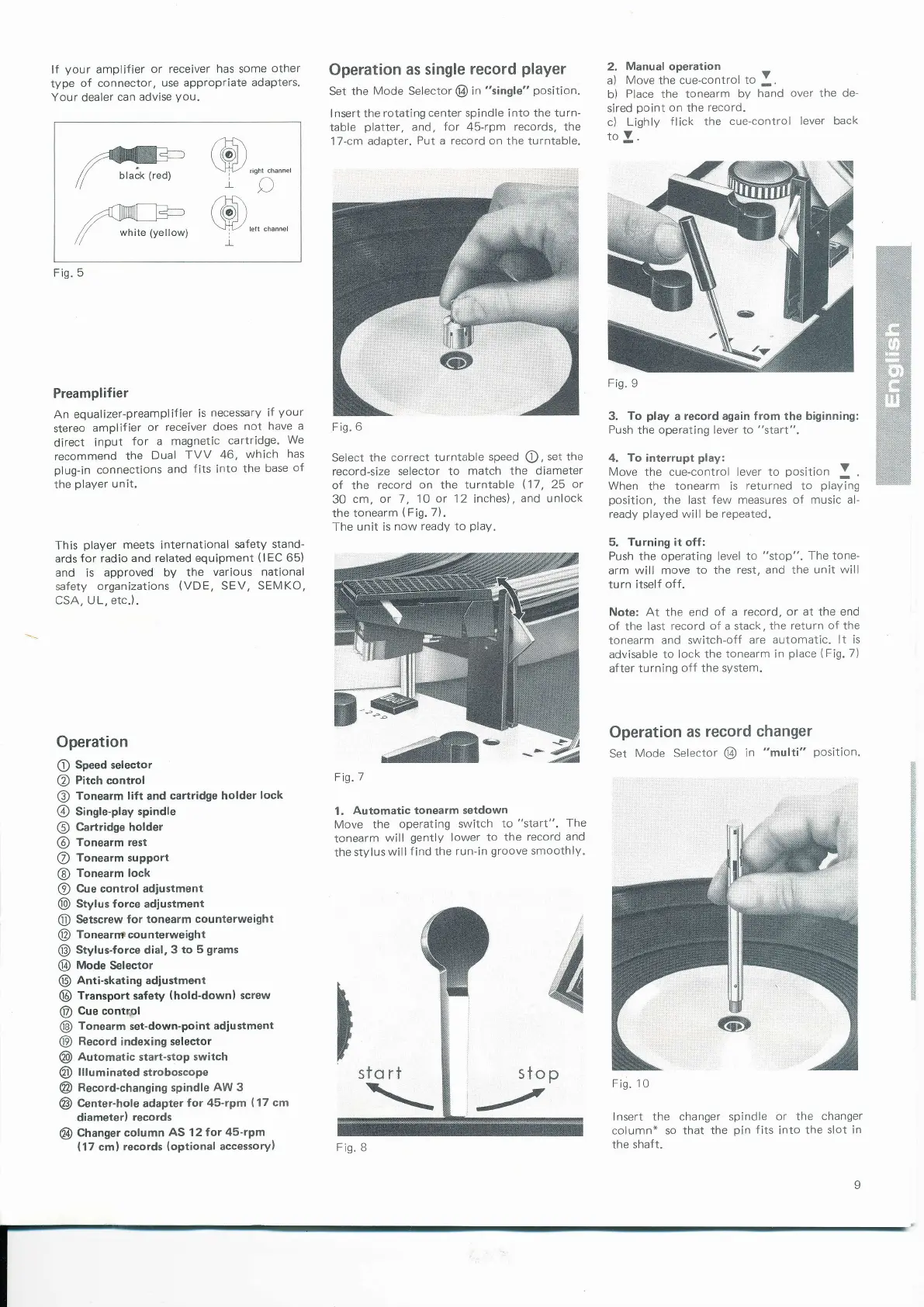 Dual 1229 - Turntable Operation; Operation as Single Record Player; Operation as Record Changer