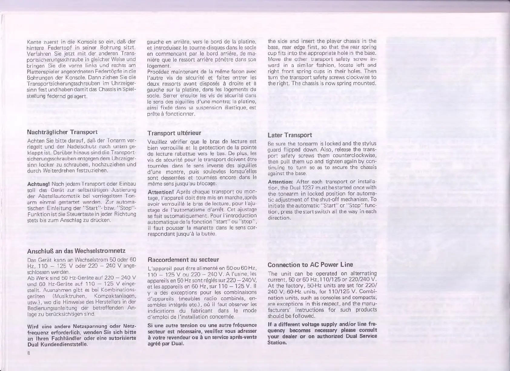 Dual 1237 - Later Transport; Connection to AC Power Line
