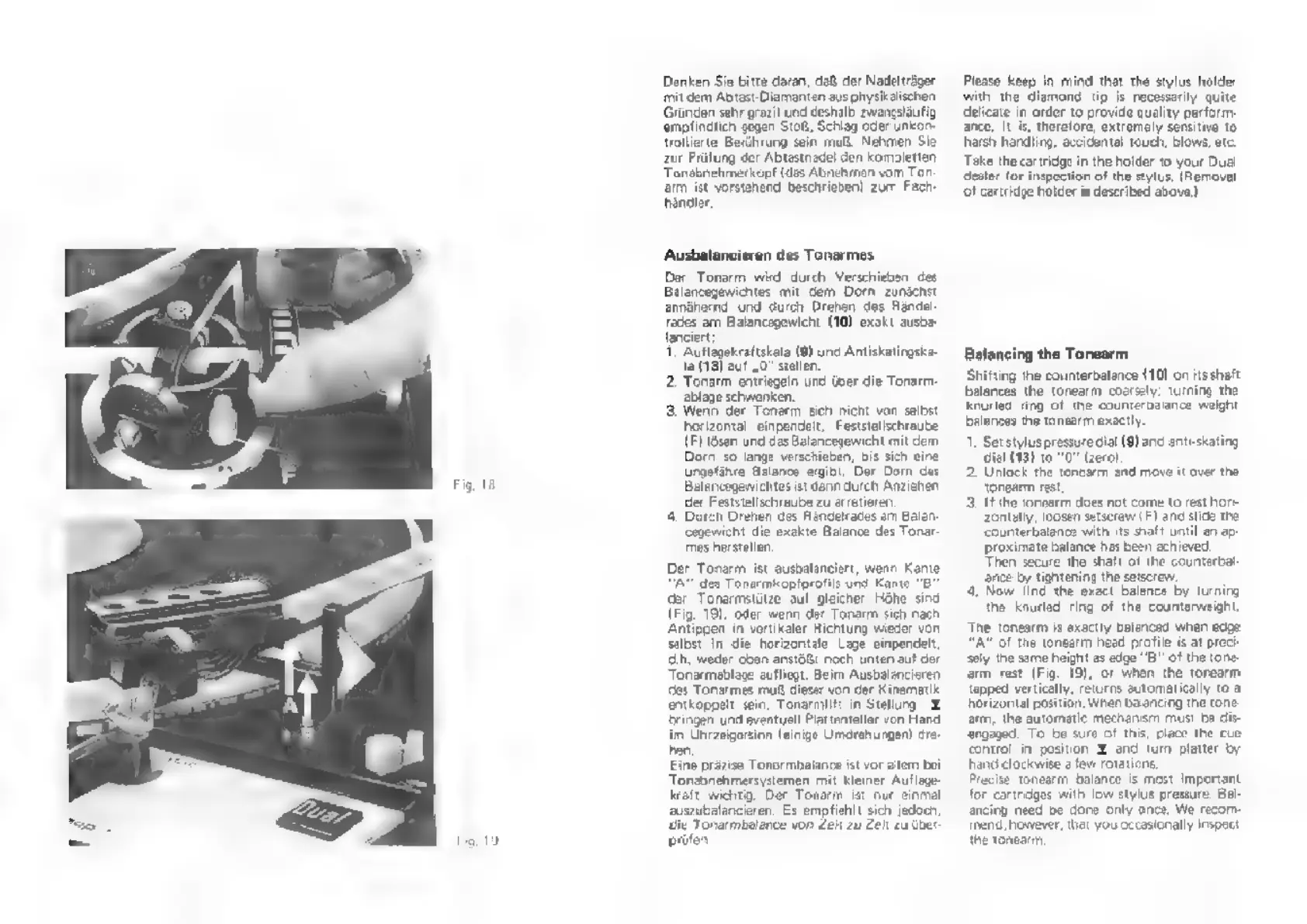 Dual 1249 - Balancing the Tonearm; Tonearm Balancing Procedure; Checking Tonearm Balance