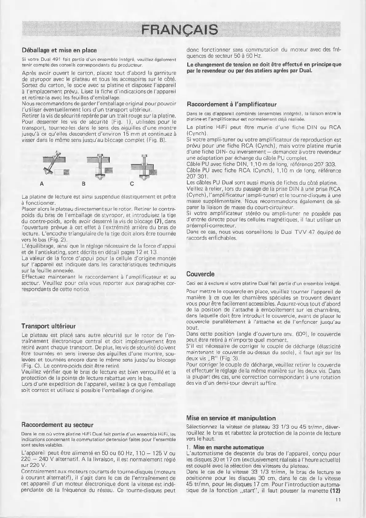 Dual 491 - Raccordement à Lamplificateur