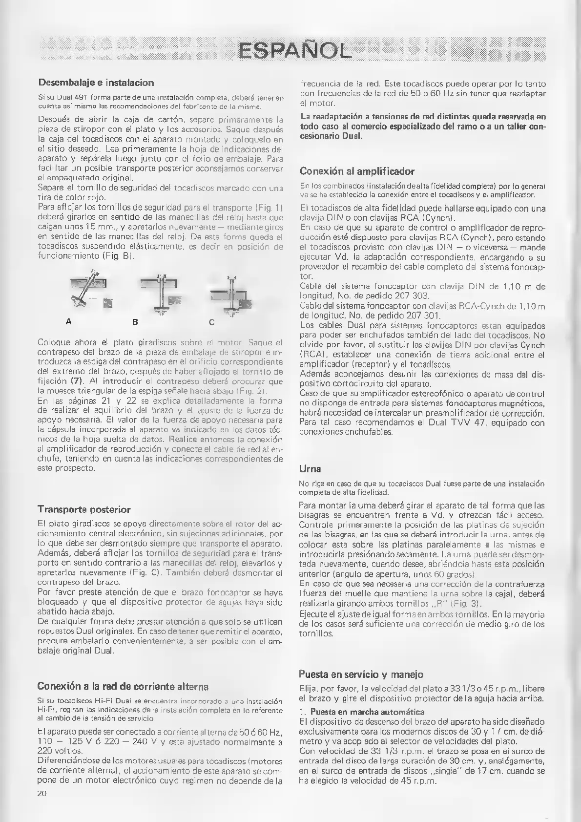 Dual 491 - Conexión al Amplificador