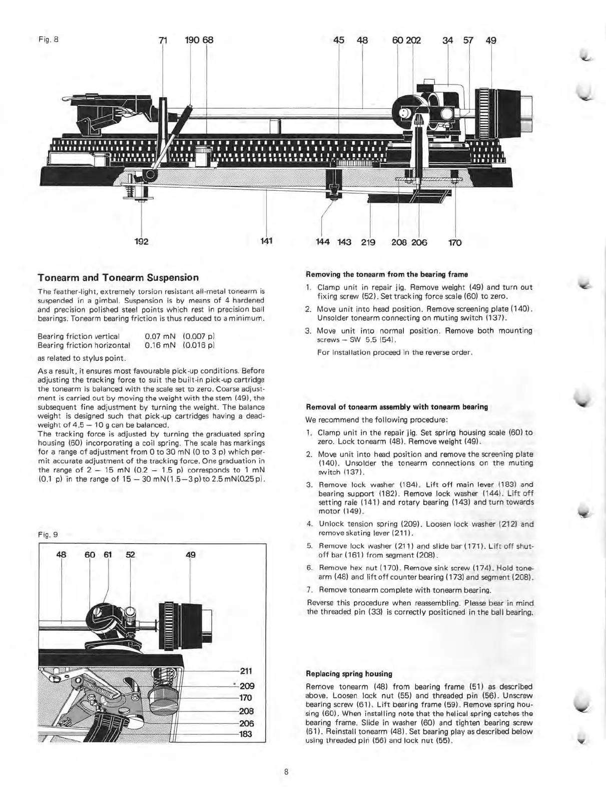 Dual 621 - Tonearm System; Tonearm Overview and Removal Procedures; Tonearm Adjustments and Replacements