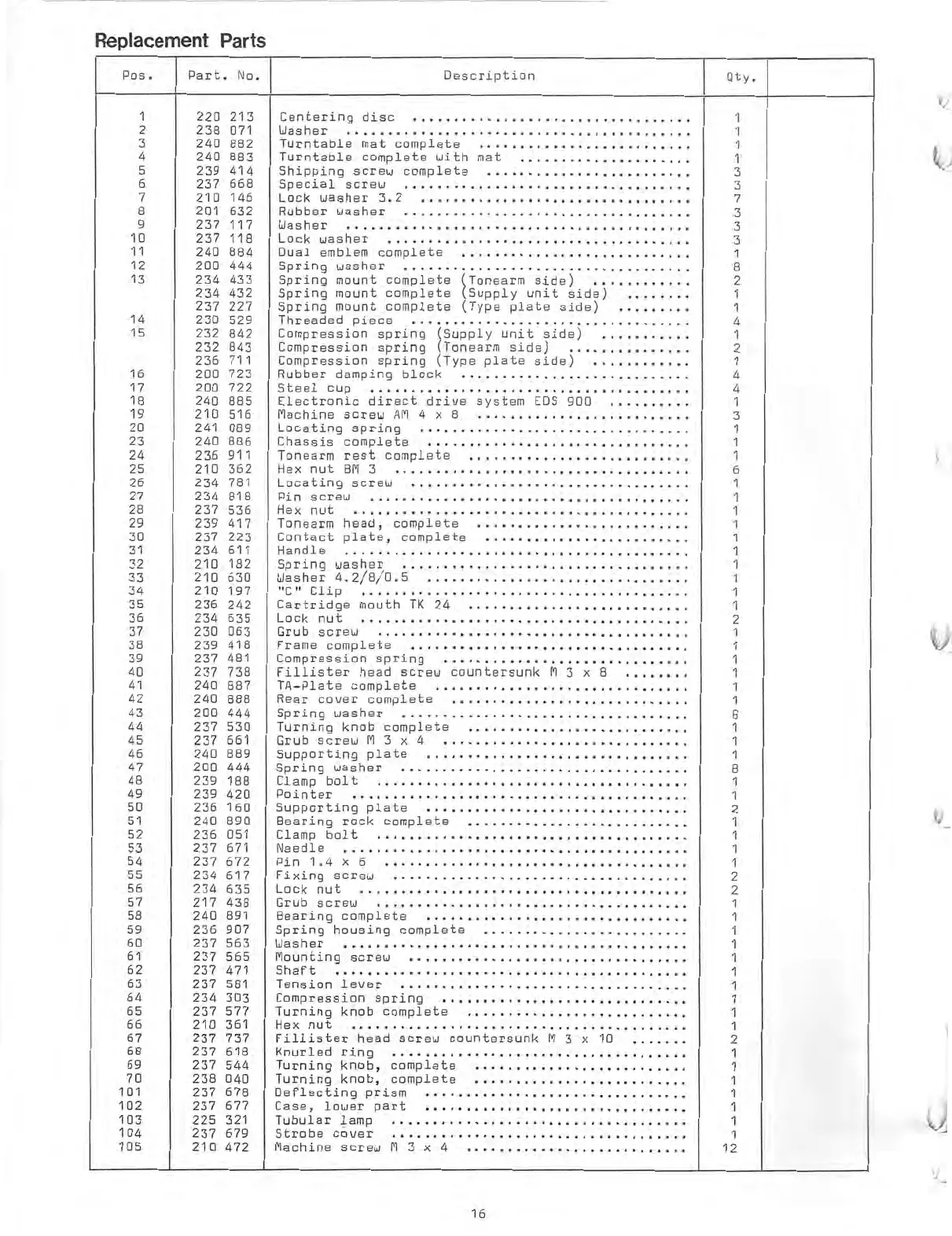 Dual 704 - Replacement Parts