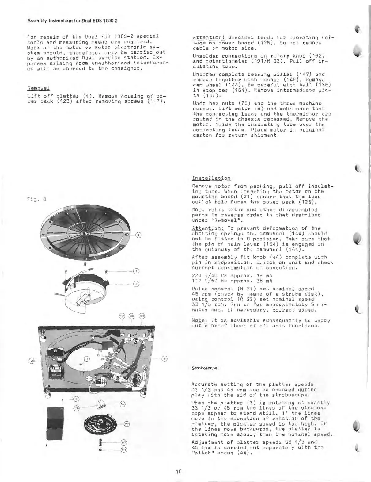 Dual 721 - Assembly I Nstructions for Dual EDS 1000-2; Stroboscope