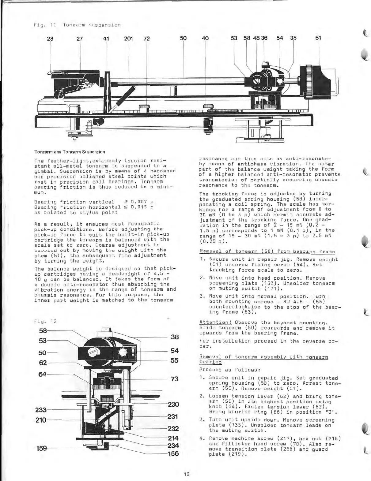 Dual 721 - Tonearm and Suspension; Tonearm Design and Balancing; Tonearm Removal