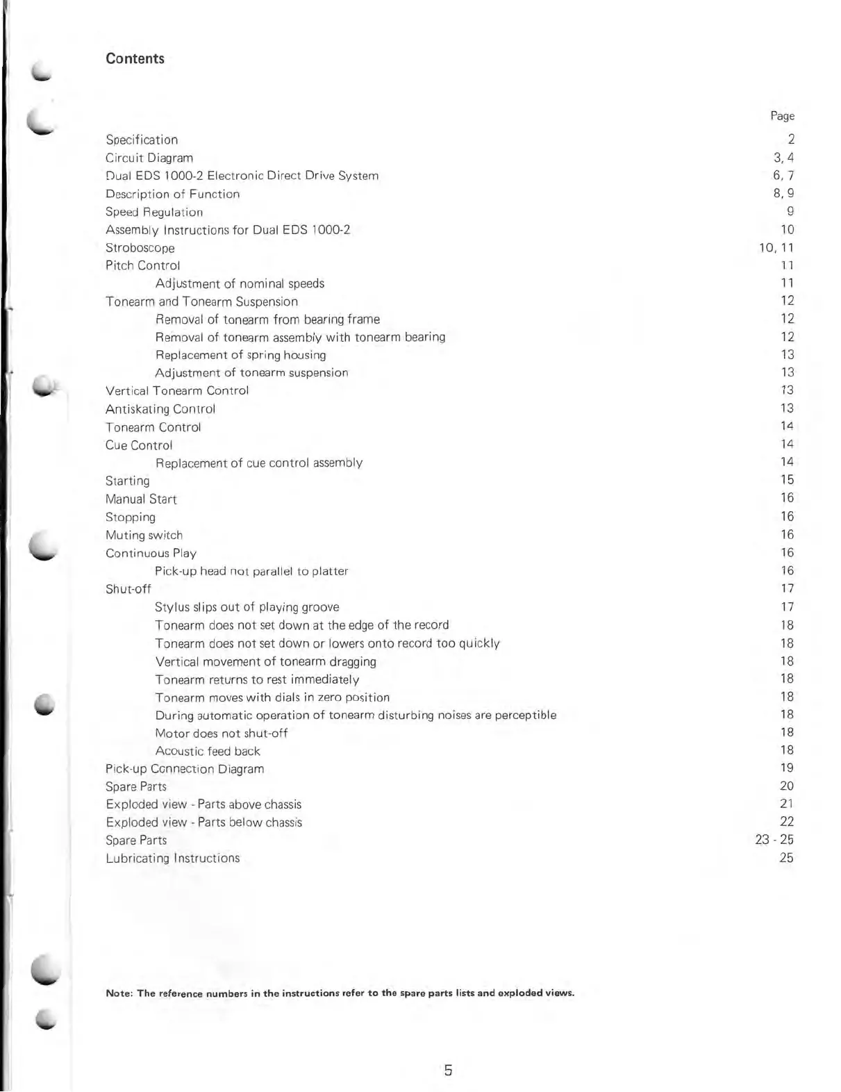 Dual 721 - Table of Contents