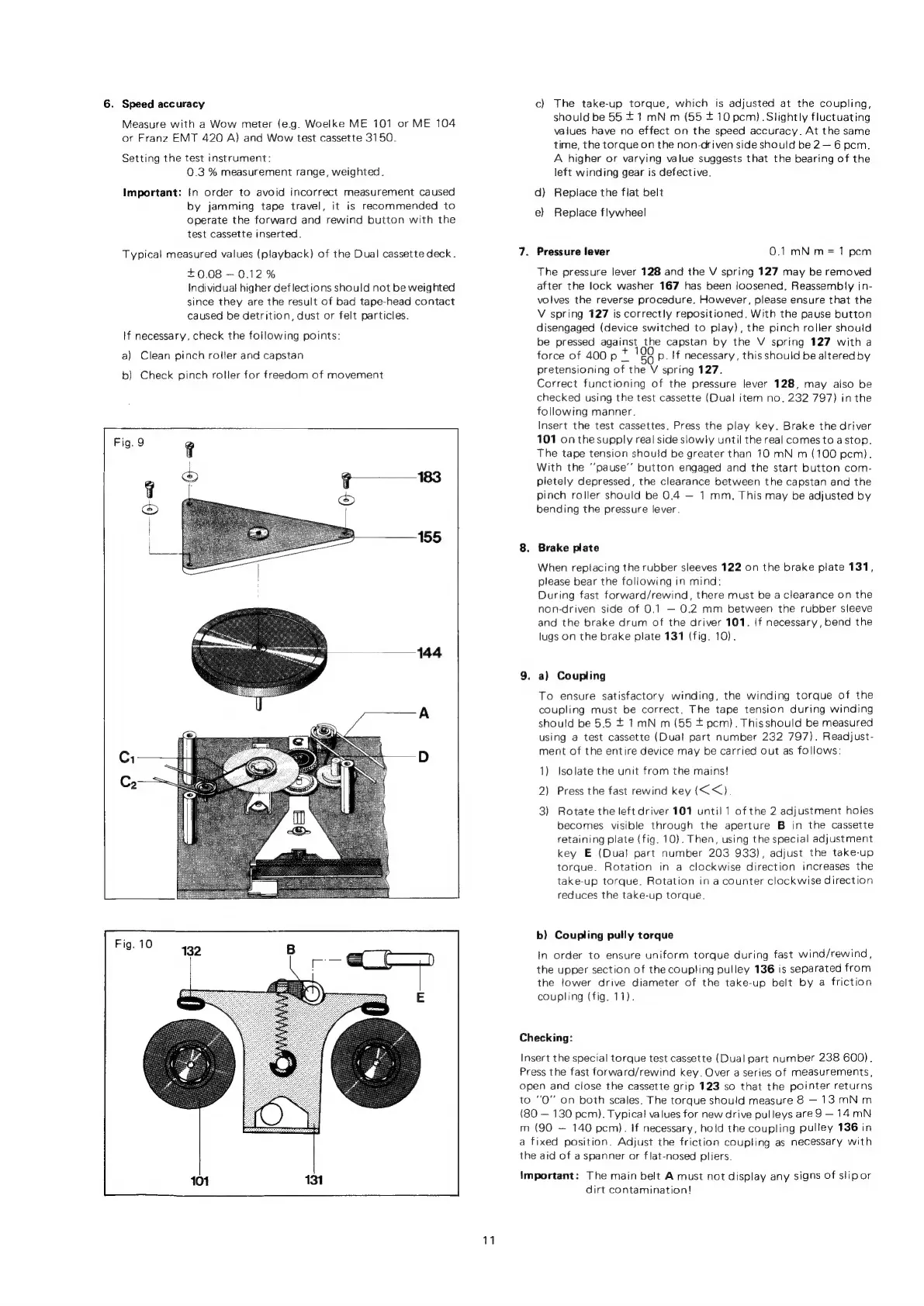 Dual C 810 - Speed Accuracy Calibration; Pressure Lever Adjustment; Brake Plate Adjustment; Coupling Adjustments
