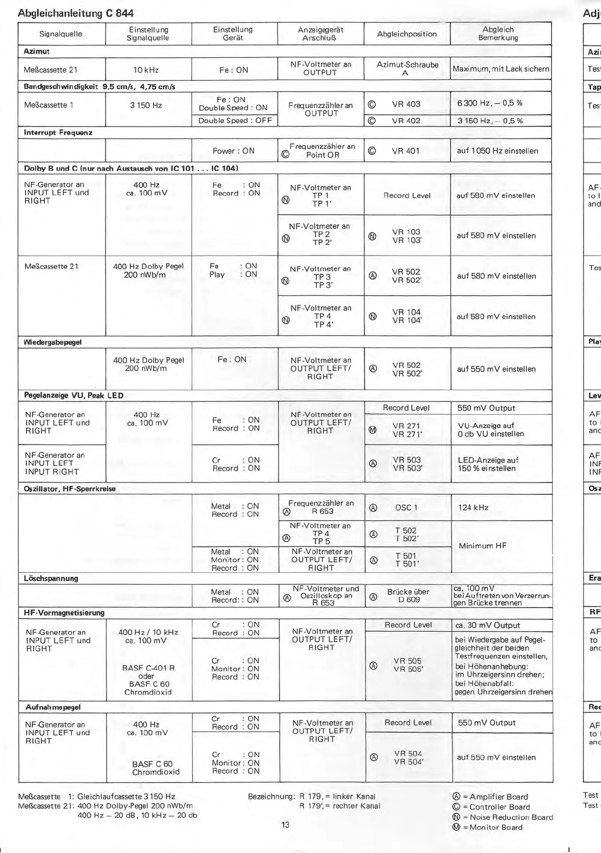Dual C 844 - Adjustment and Calibration Procedures; Mechanical, Level, and RF Adjustments