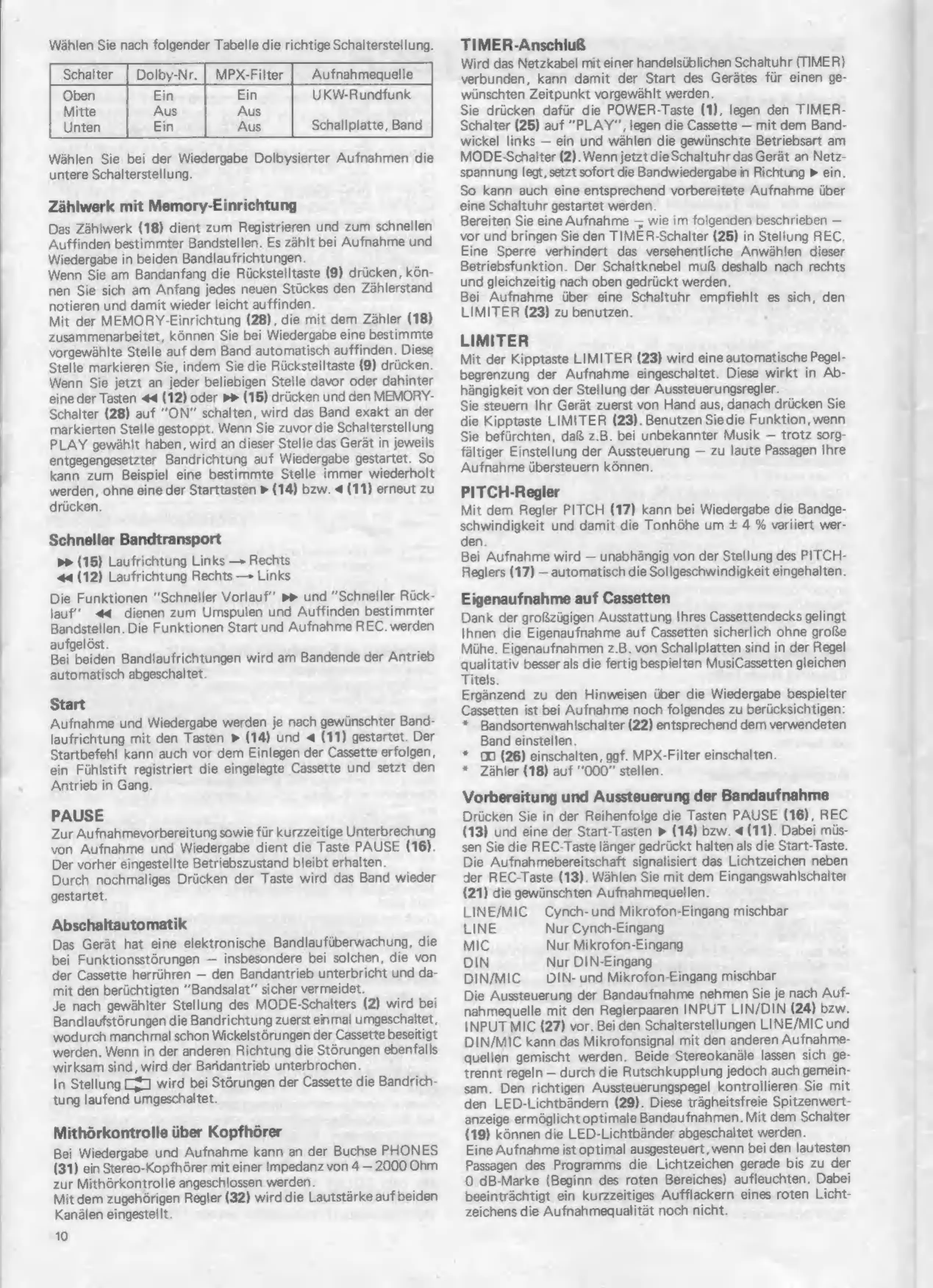 Schalterstellungen