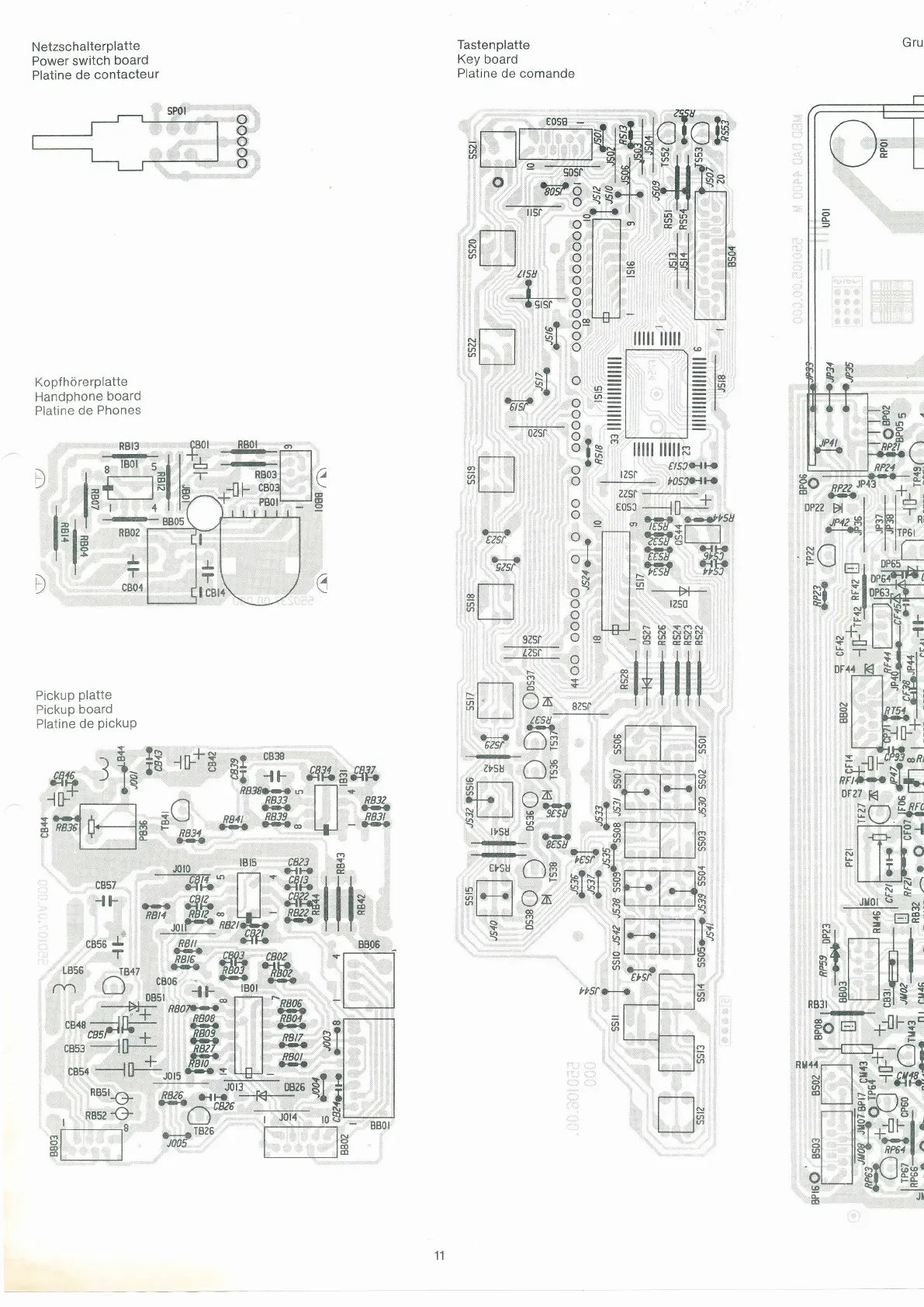 Dual CD 40 - Component Layouts; Power, Handphone, and Keyboard Boards; Pickup Board Layout