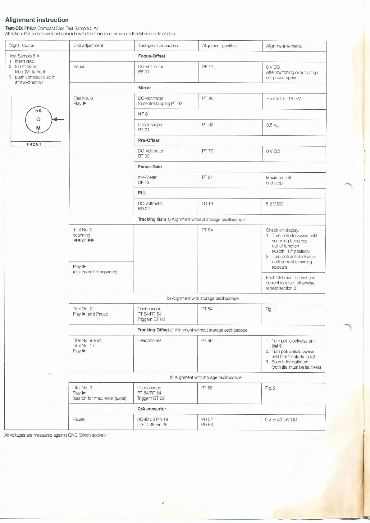 Signal source Unit adjustment Test-gear connection