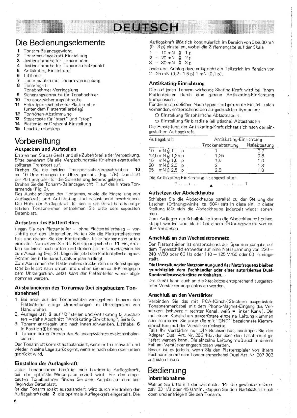 Dual CS130S - Bedienung