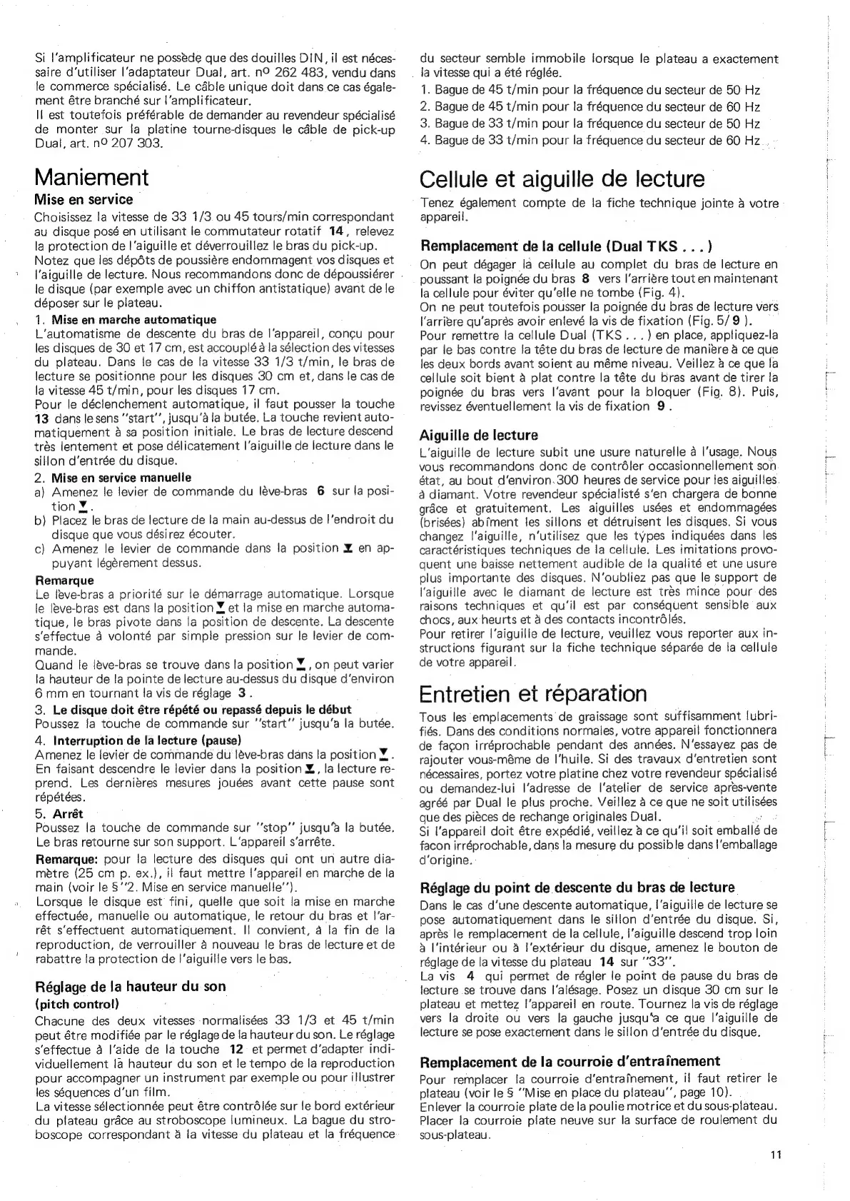 Dual CS130S - Entretien et Reparation