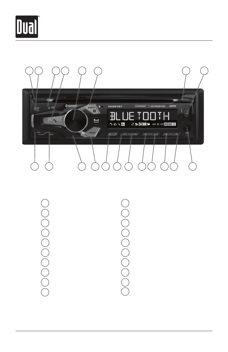Dual DC207BT - Control Locations; Front Panel Control Overview
