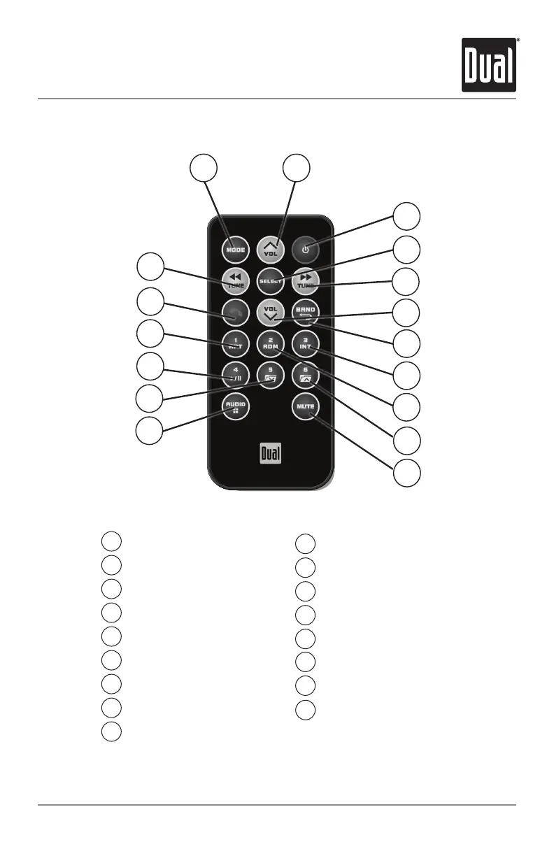 Dual DC207BT - Remote Control; Remote Control Button Functions
