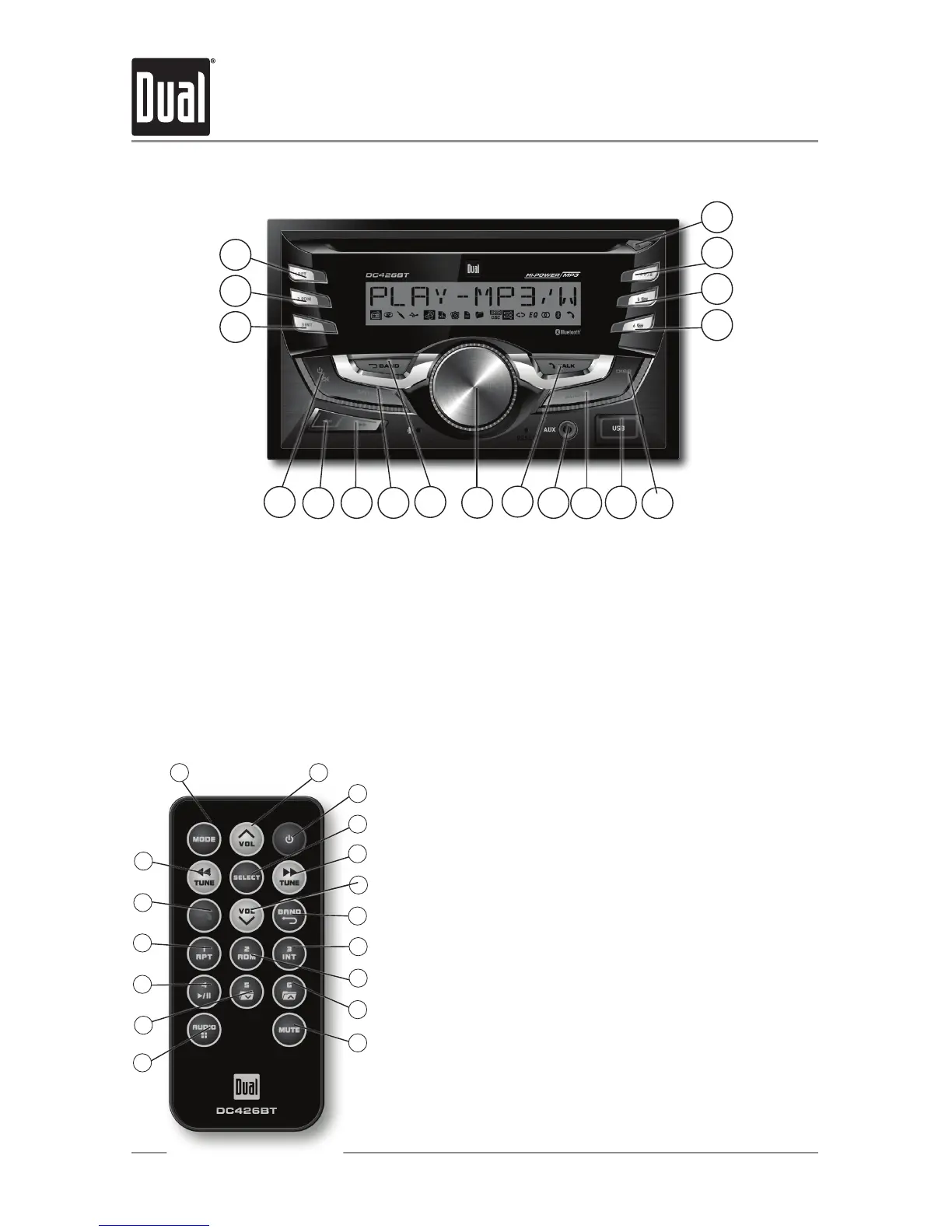 Dual DC426BT - Control Panel Layout; Receiver Button Functions