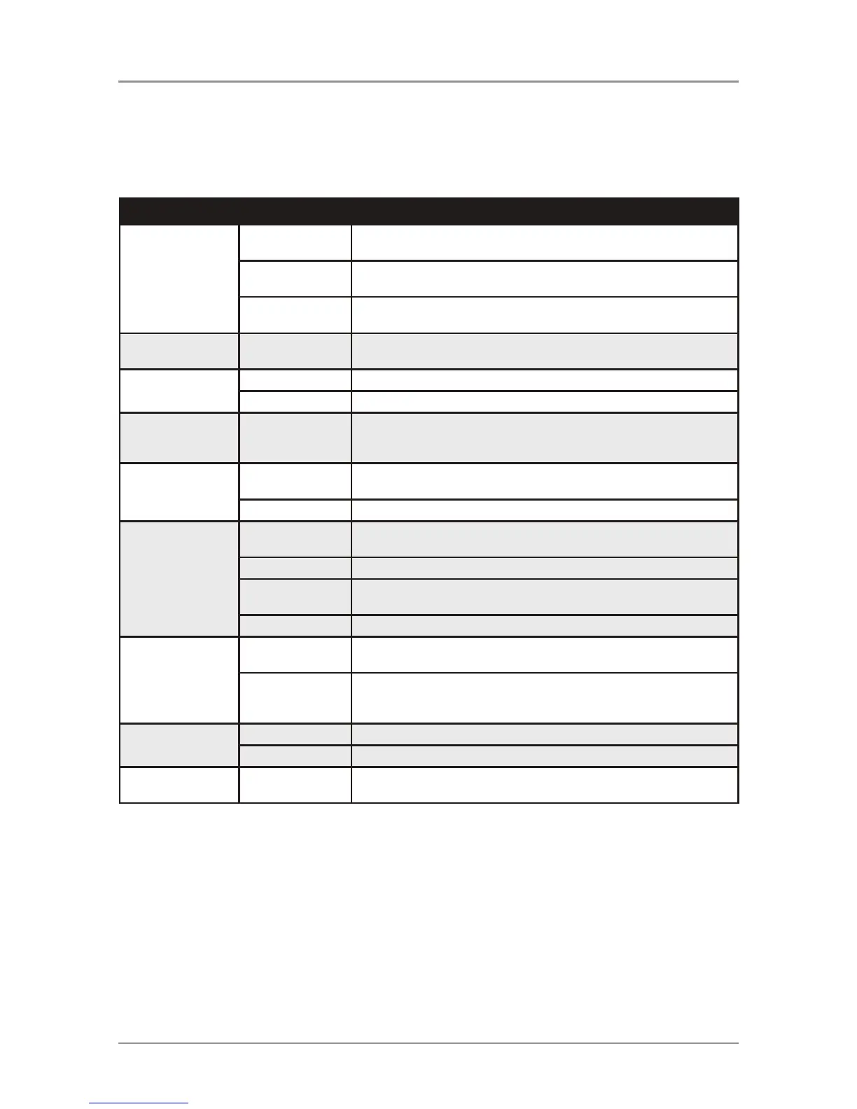 Menu Function Options Action