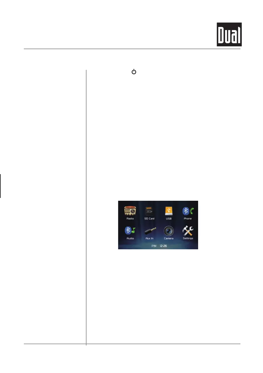 to turn the unit on. Press and hold to turn the